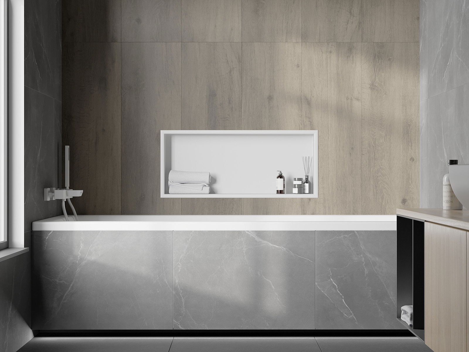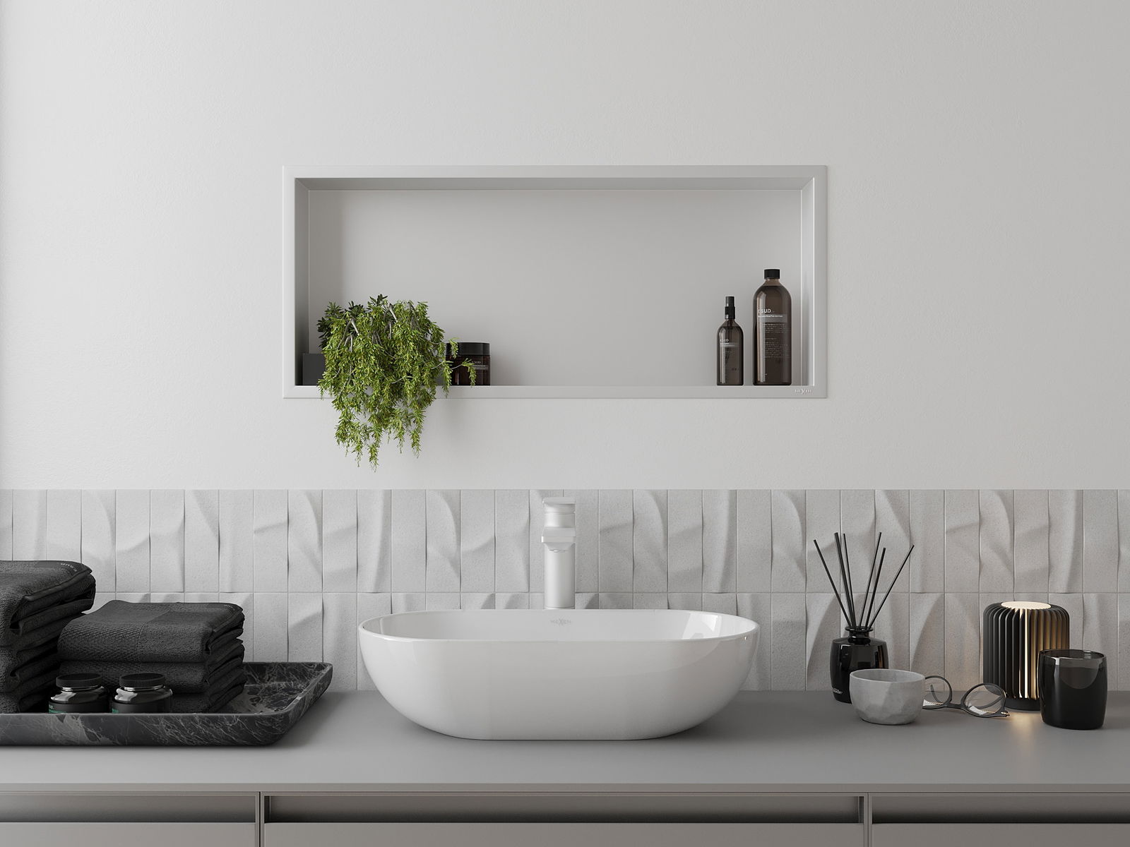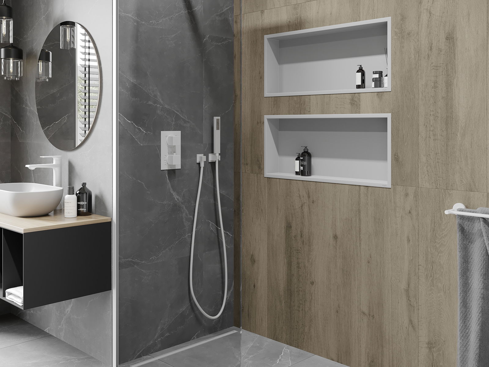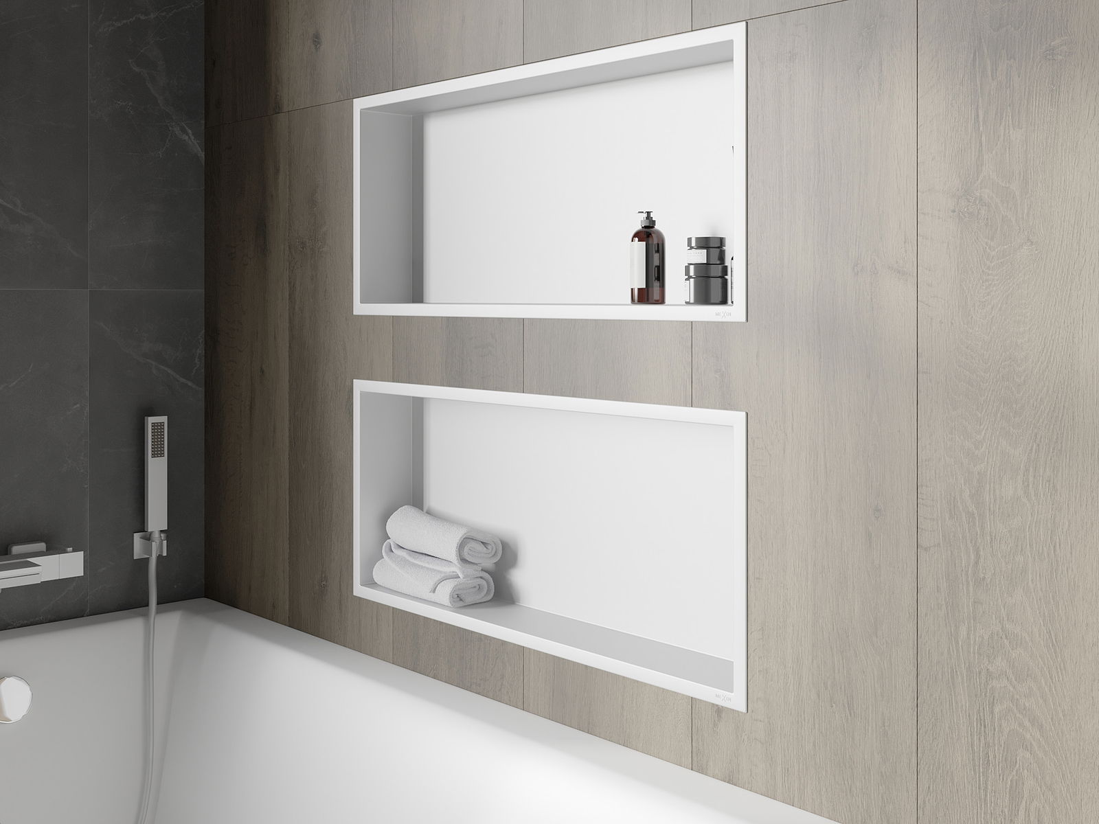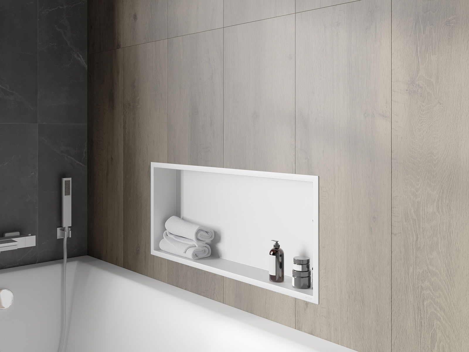 Możliwość montażu w ścianie lub w specjalnie przygotowanej zabudowie. Jest to niezwykle nowoczesne i funkcjonalne rozwiązanie, pozwalające zaoszczędzić przestrzeń oraz dopasować produkt do estetyki wnętrza i stworzyć spójną kompozycję.