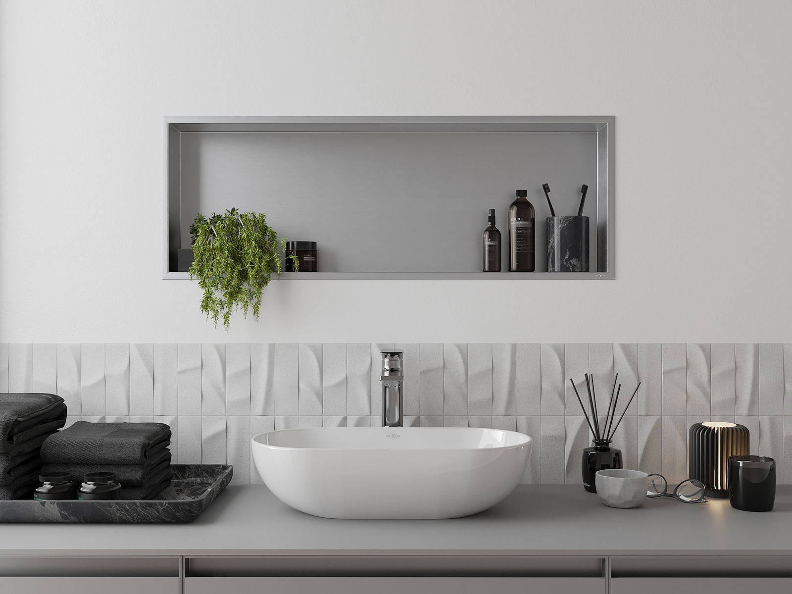 Możliwość montażu w ścianie lub w specjalnie przygotowanej zabudowie. Jest to niezwykle nowoczesne i funkcjonalne rozwiązanie, pozwalające zaoszczędzić przestrzeń oraz dopasować produkt do estetyki wnętrza i stworzyć spójną kompozycję.
