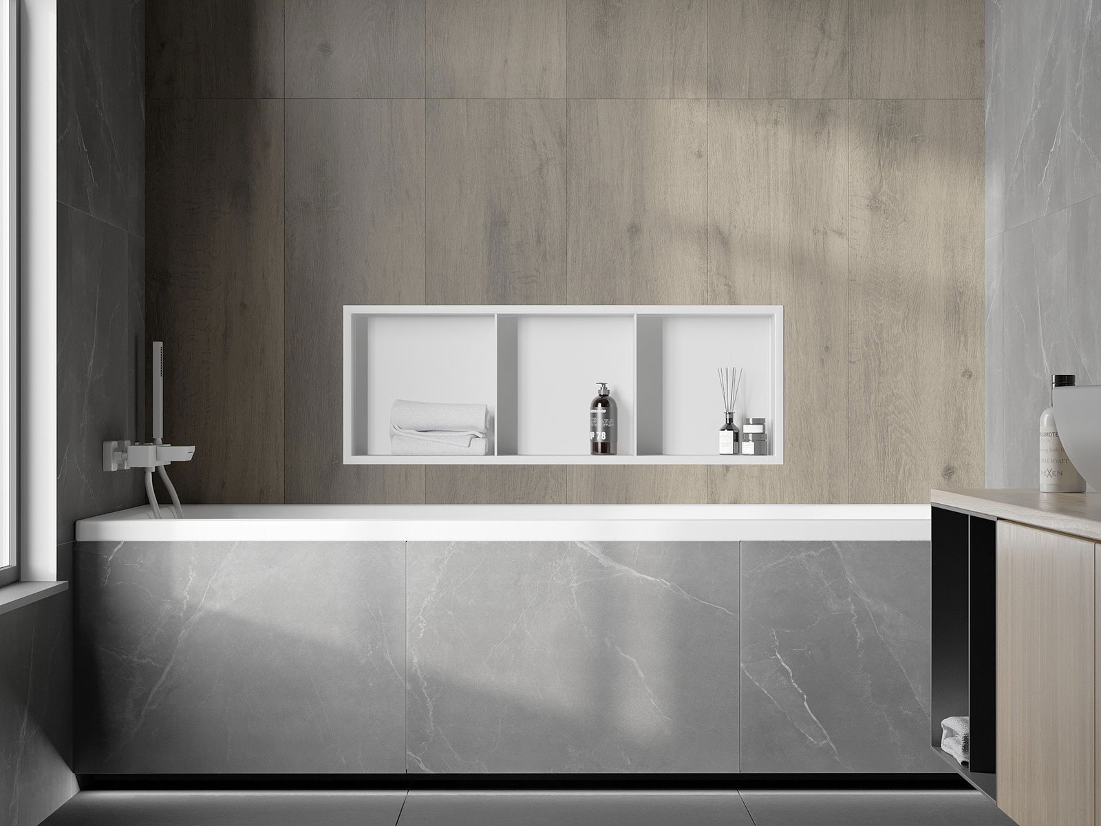 Możliwość montażu w ścianie lub w specjalnie przygotowanej zabudowie. Jest to niezwykle nowoczesne i funkcjonalne rozwiązanie, pozwalające zaoszczędzić przestrzeń oraz dopasować produkt do estetyki wnętrza i stworzyć spójną kompozycję.