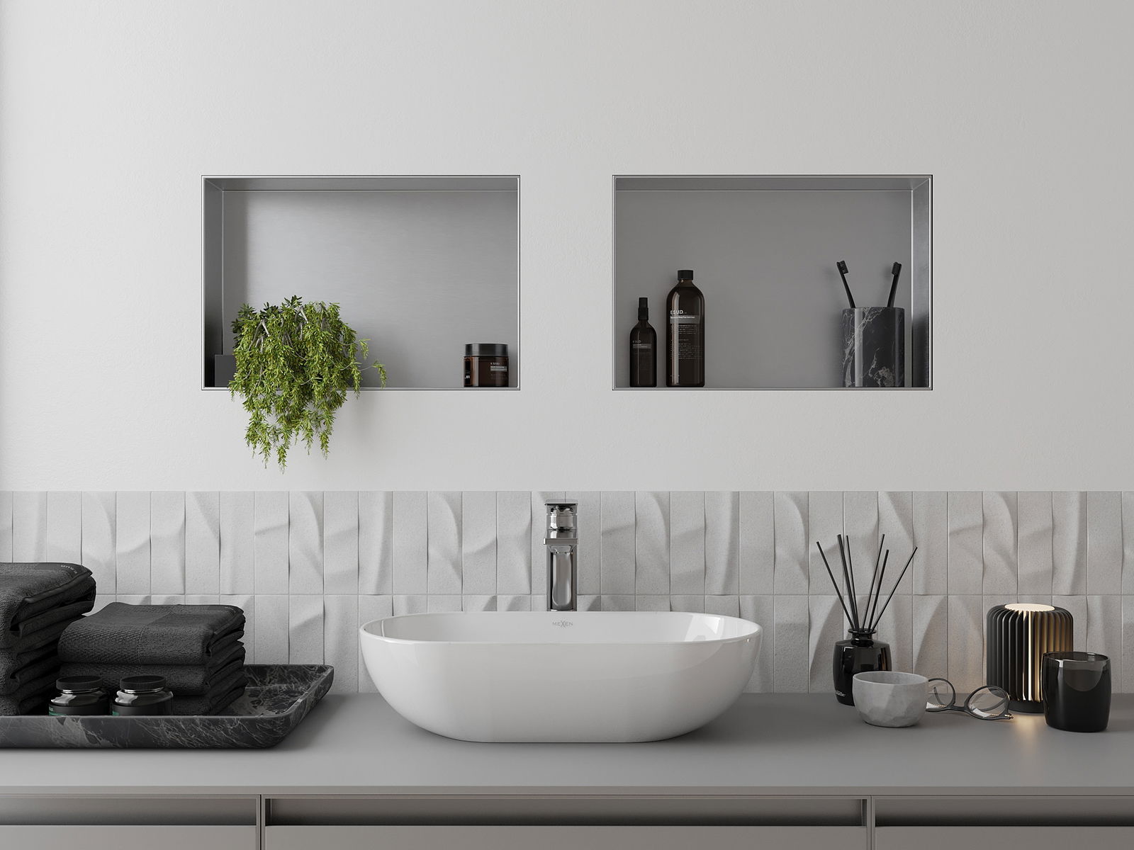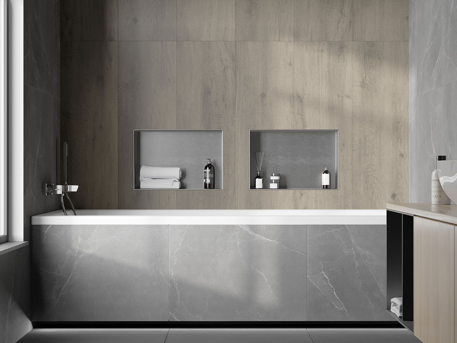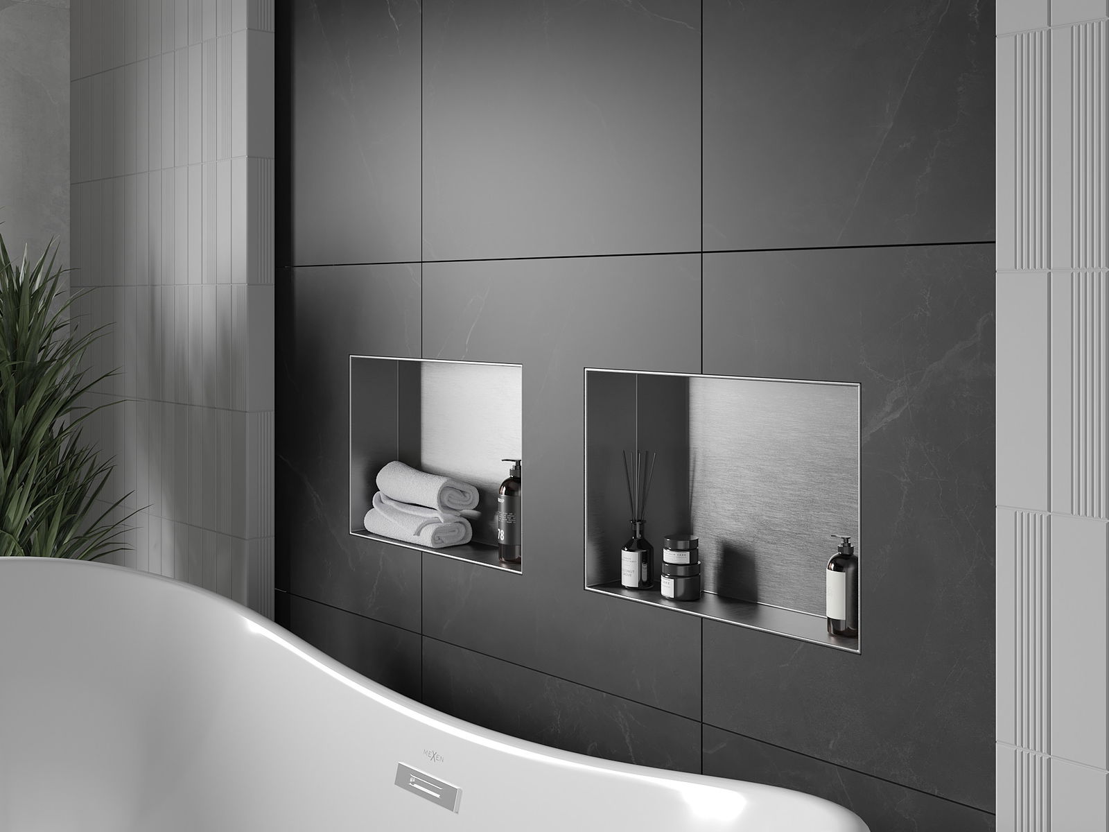 Możliwość montażu w ścianie lub w specjalnie przygotowanej zabudowie. Jest to niezwykle nowoczesne i funkcjonalne rozwiązanie, pozwalające zaoszczędzić przestrzeń oraz dopasować produkt do estetyki wnętrza i stworzyć spójną kompozycję.