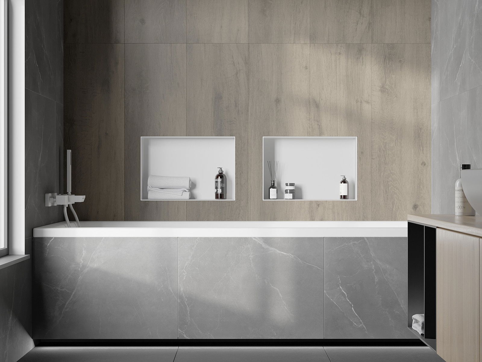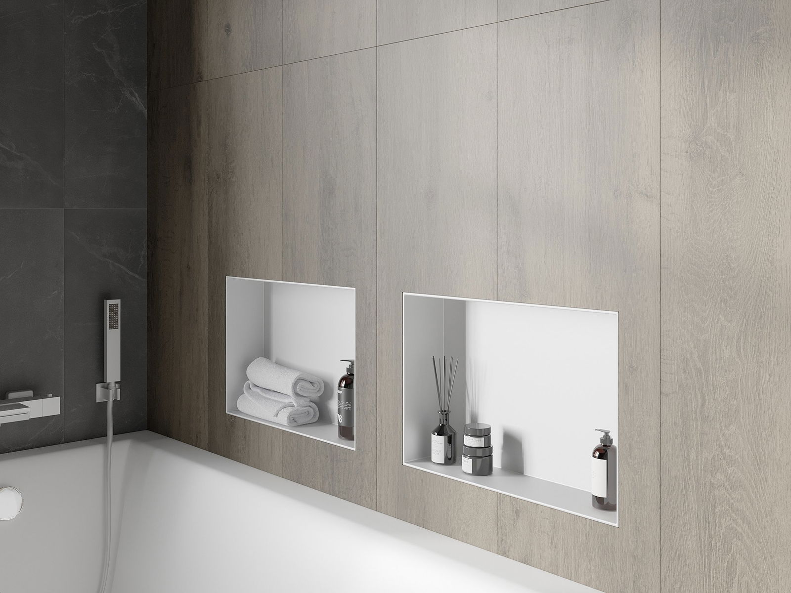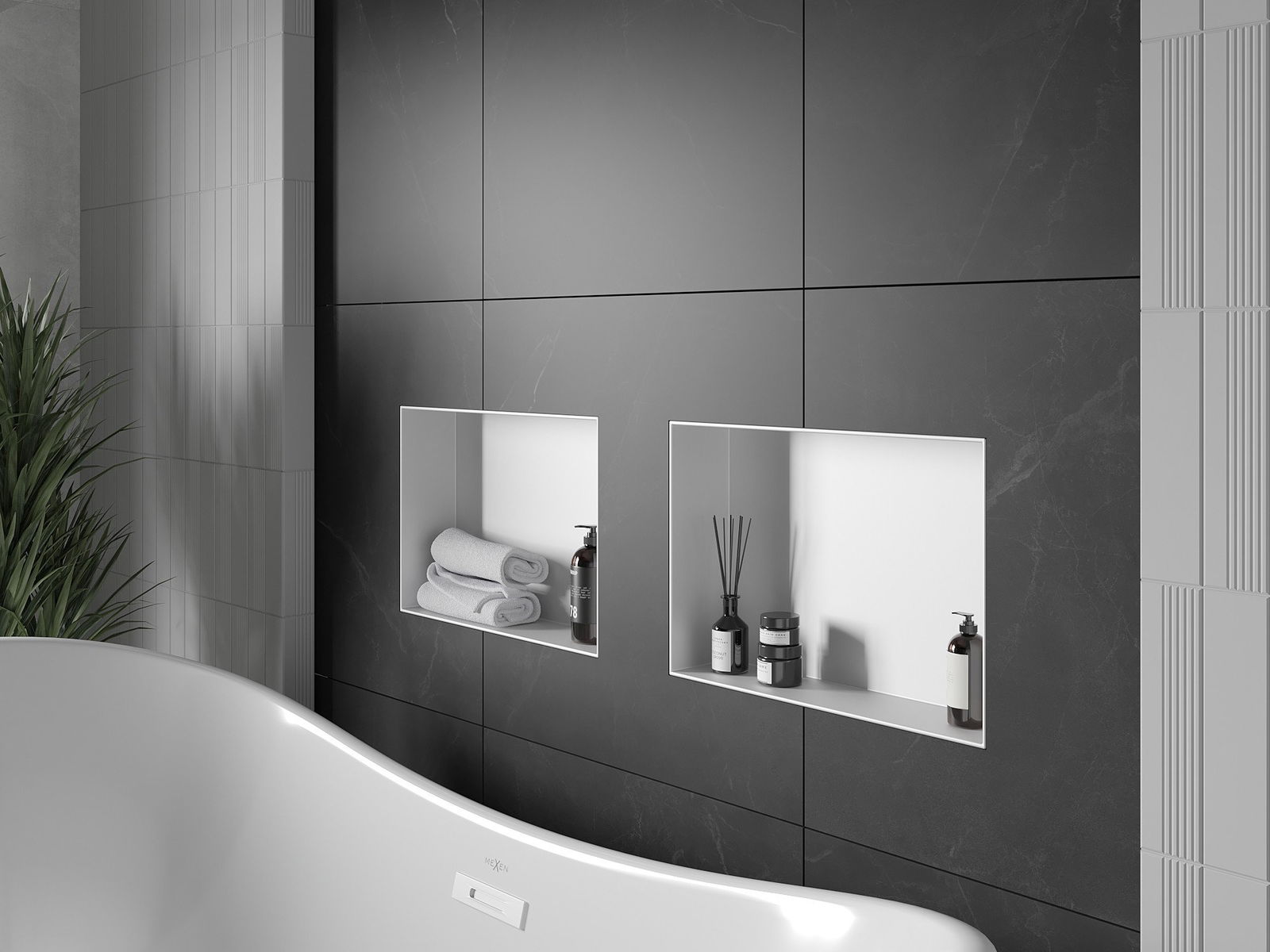 Możliwość montażu w ścianie lub w specjalnie przygotowanej zabudowie. Jest to niezwykle nowoczesne i funkcjonalne rozwiązanie, pozwalające zaoszczędzić przestrzeń oraz dopasować produkt do estetyki wnętrza i stworzyć spójną kompozycję.
