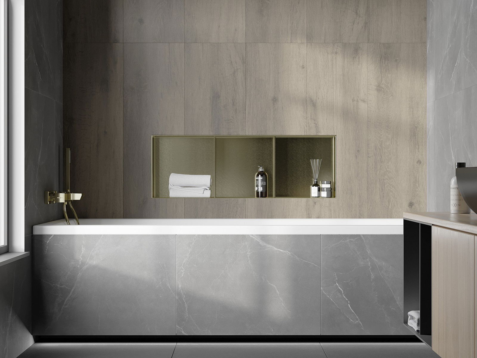 Możliwość montażu w ścianie lub w specjalnie przygotowanej zabudowie. Jest to niezwykle nowoczesne i funkcjonalne rozwiązanie, pozwalające zaoszczędzić przestrzeń oraz dopasować produkt do estetyki wnętrza i stworzyć spójną kompozycję.