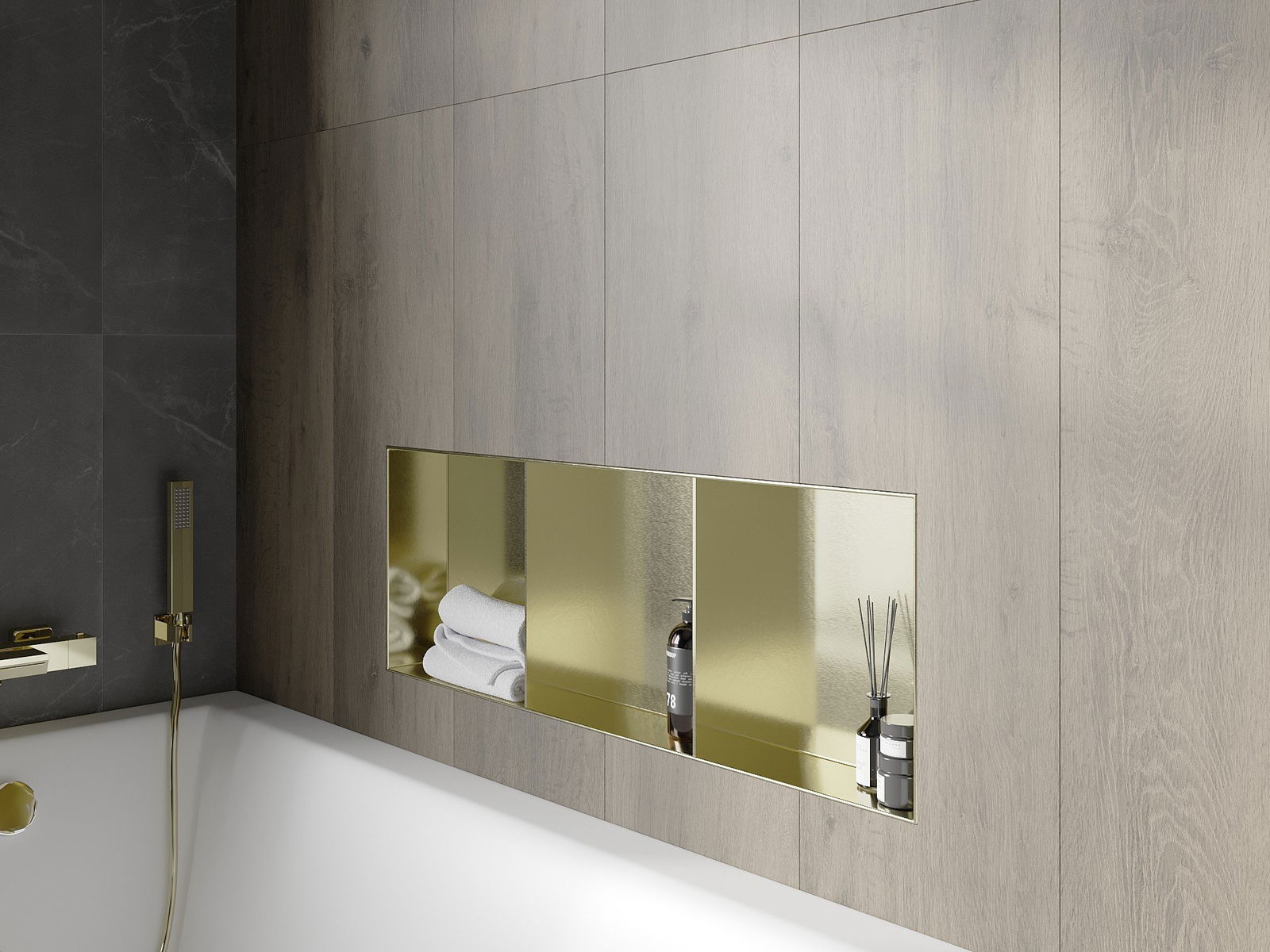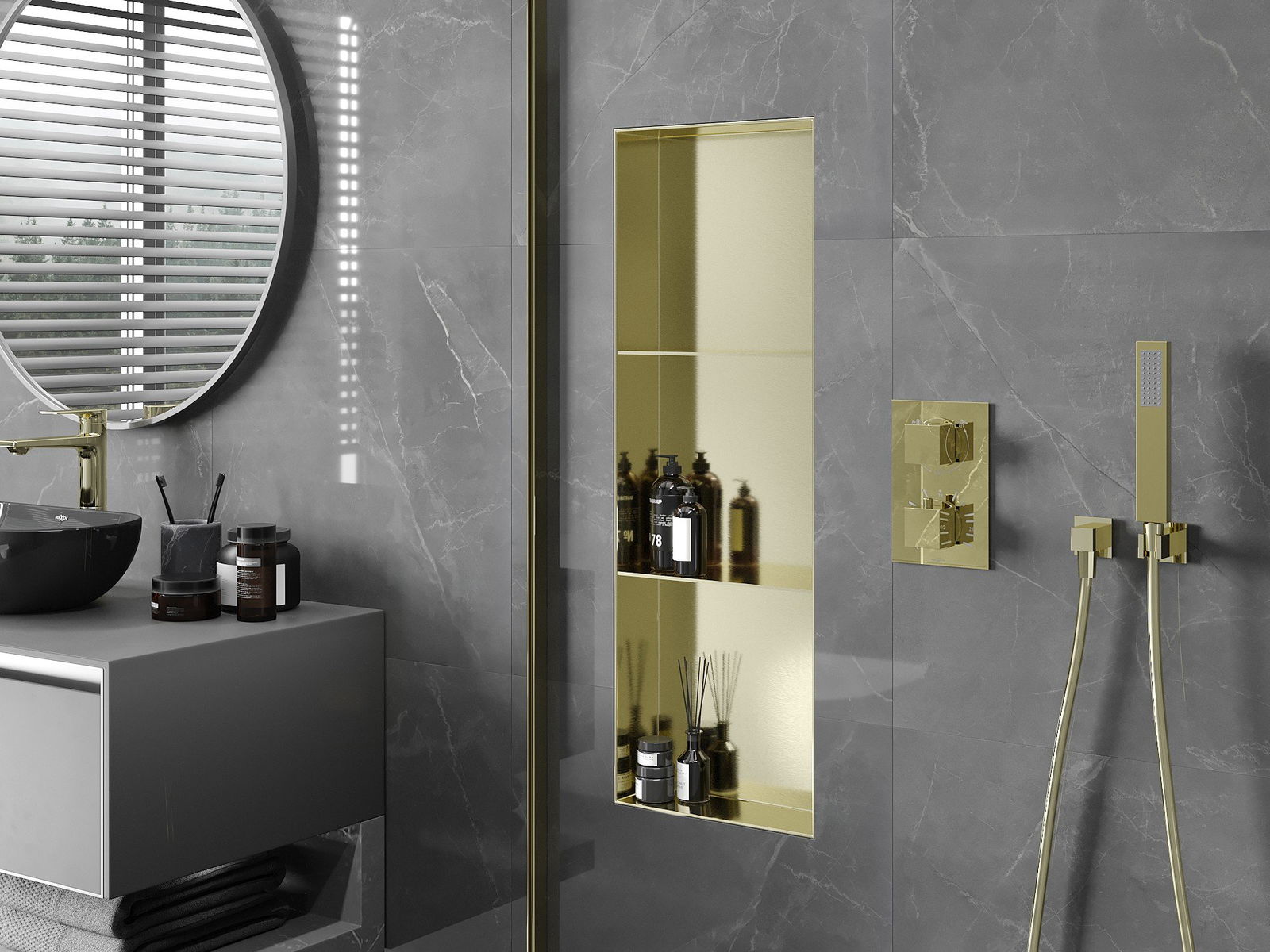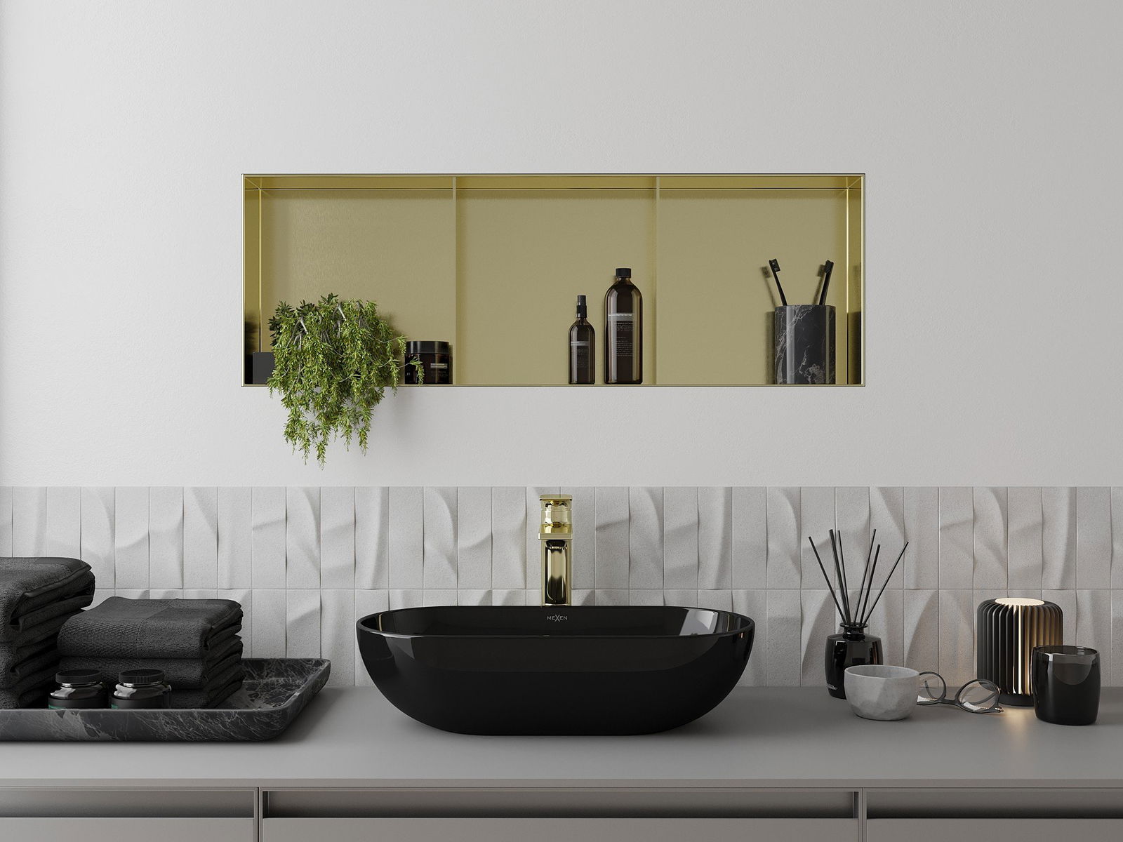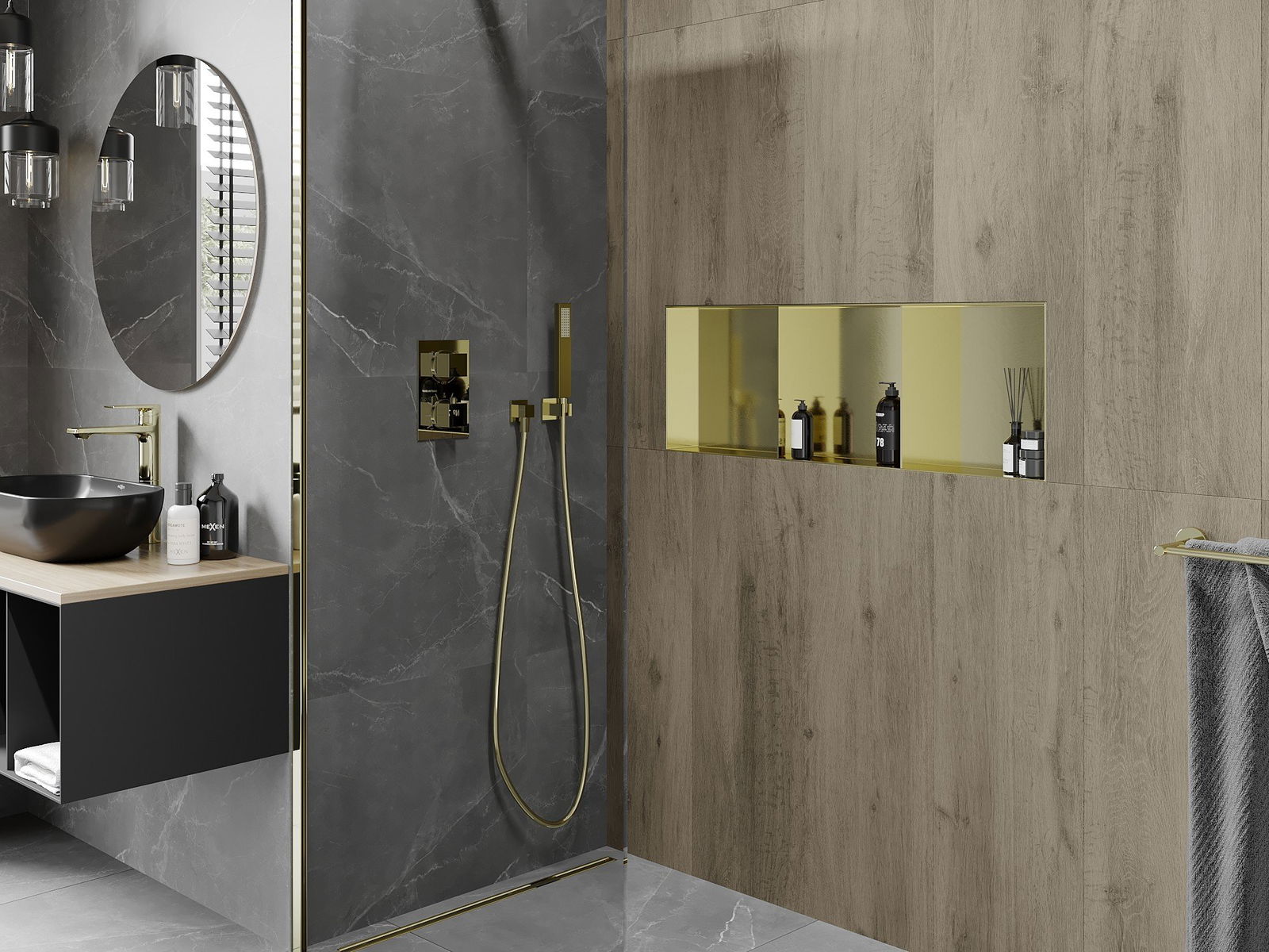 Mexen X-Wall-NR półka wnękowa bez kołnierza z półką 90 x 30 cm, złota szczotkowana - 1951903010S