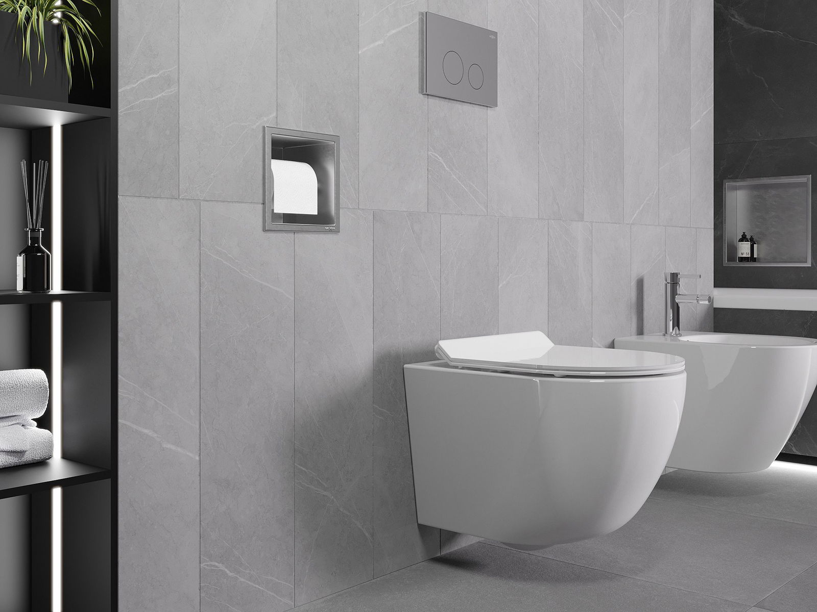Możliwość montażu w ścianie lub w zabudowie przy stelażu podtynkowym. Jest to niezwykle nowoczesne i funkcjonalne rozwiązanie, pozwalające zaoszczędzić przestrzeń oraz dopasować produkt do estetyki wnętrza i stworzyć spójną kompozycję.