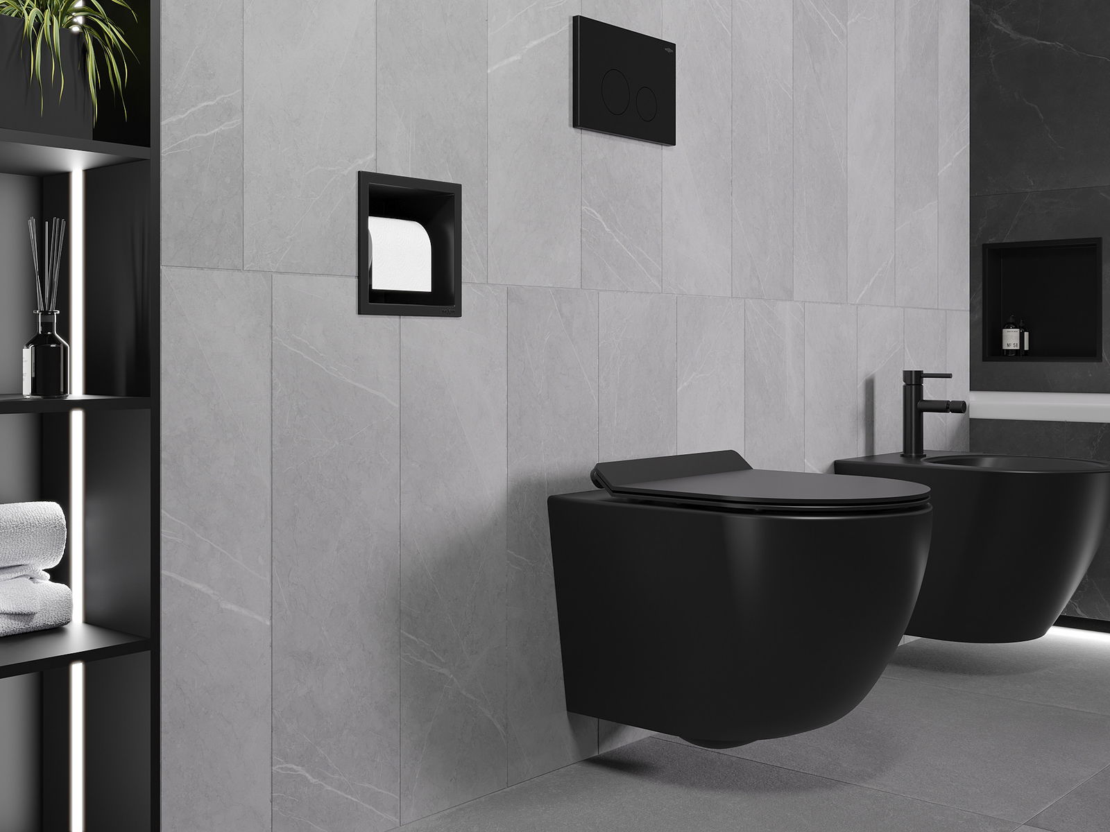 Możliwość montażu w ścianie lub w zabudowie przy stelażu podtynkowym. Jest to niezwykle nowoczesne i funkcjonalne rozwiązanie, pozwalające zaoszczędzić przestrzeń oraz dopasować produkt do estetyki wnętrza i stworzyć spójną kompozycję.