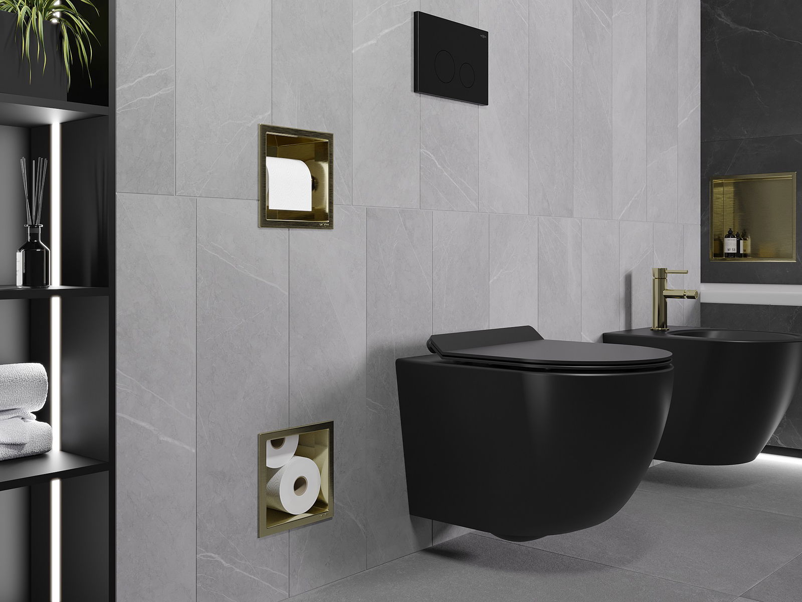 Możliwość montażu w ścianie lub w zabudowie przy stelażu podtynkowym. Jest to niezwykle nowoczesne i funkcjonalne rozwiązanie, pozwalające zaoszczędzić przestrzeń oraz dopasować produkt do estetyki wnętrza i stworzyć spójną kompozycję.