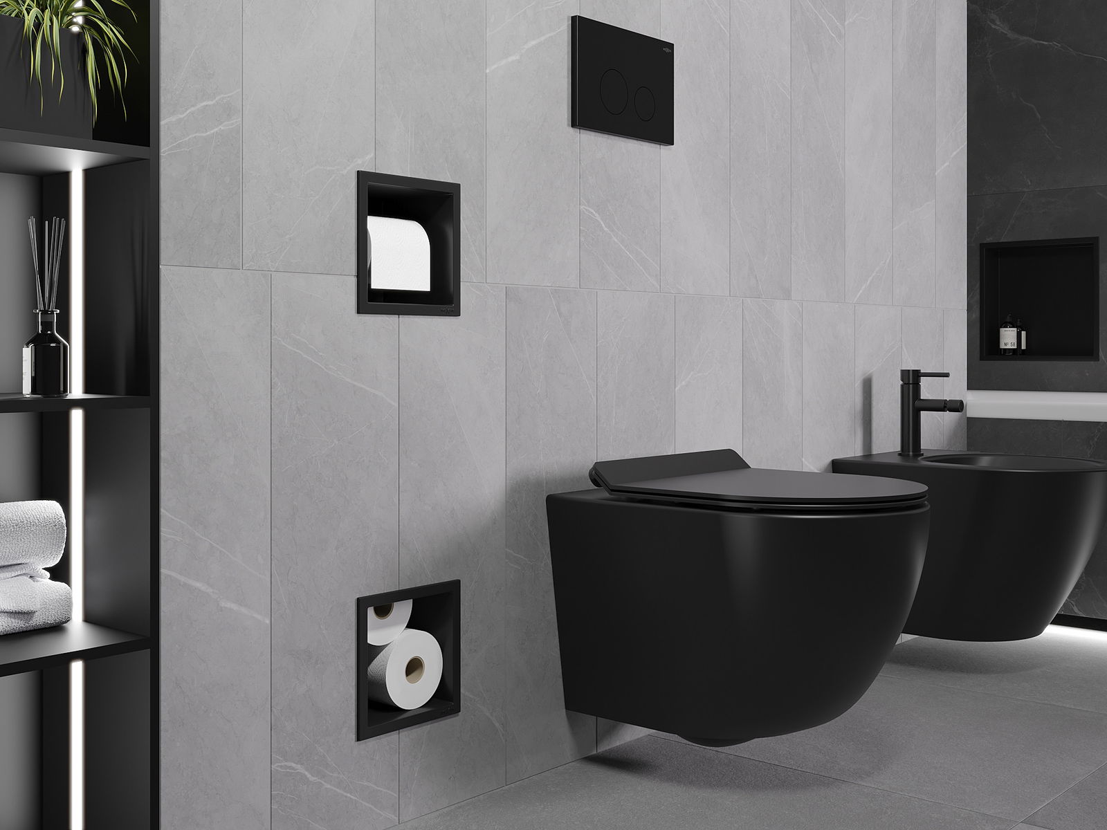 Możliwość montażu w ścianie lub w zabudowie przy stelażu podtynkowym. Jest to niezwykle nowoczesne i funkcjonalne rozwiązanie, pozwalające zaoszczędzić przestrzeń oraz dopasować produkt do estetyki wnętrza i stworzyć spójną kompozycję.