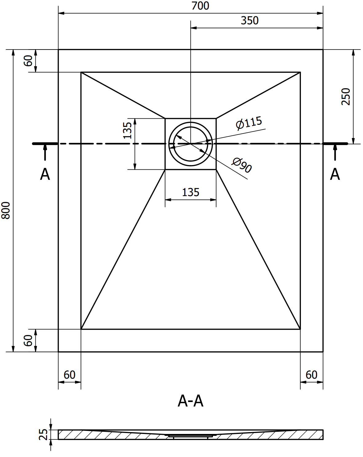 Brodzik został zaprojektowany w taki sposób, by woda mogła swobodnie spływać w kierunku odpływu. Zapewnia szybkie i efektywne odprowadzanie wody z powierzchni brodzika, zapobiegając powstawianiu kałuż i zalewaniu łazienki.