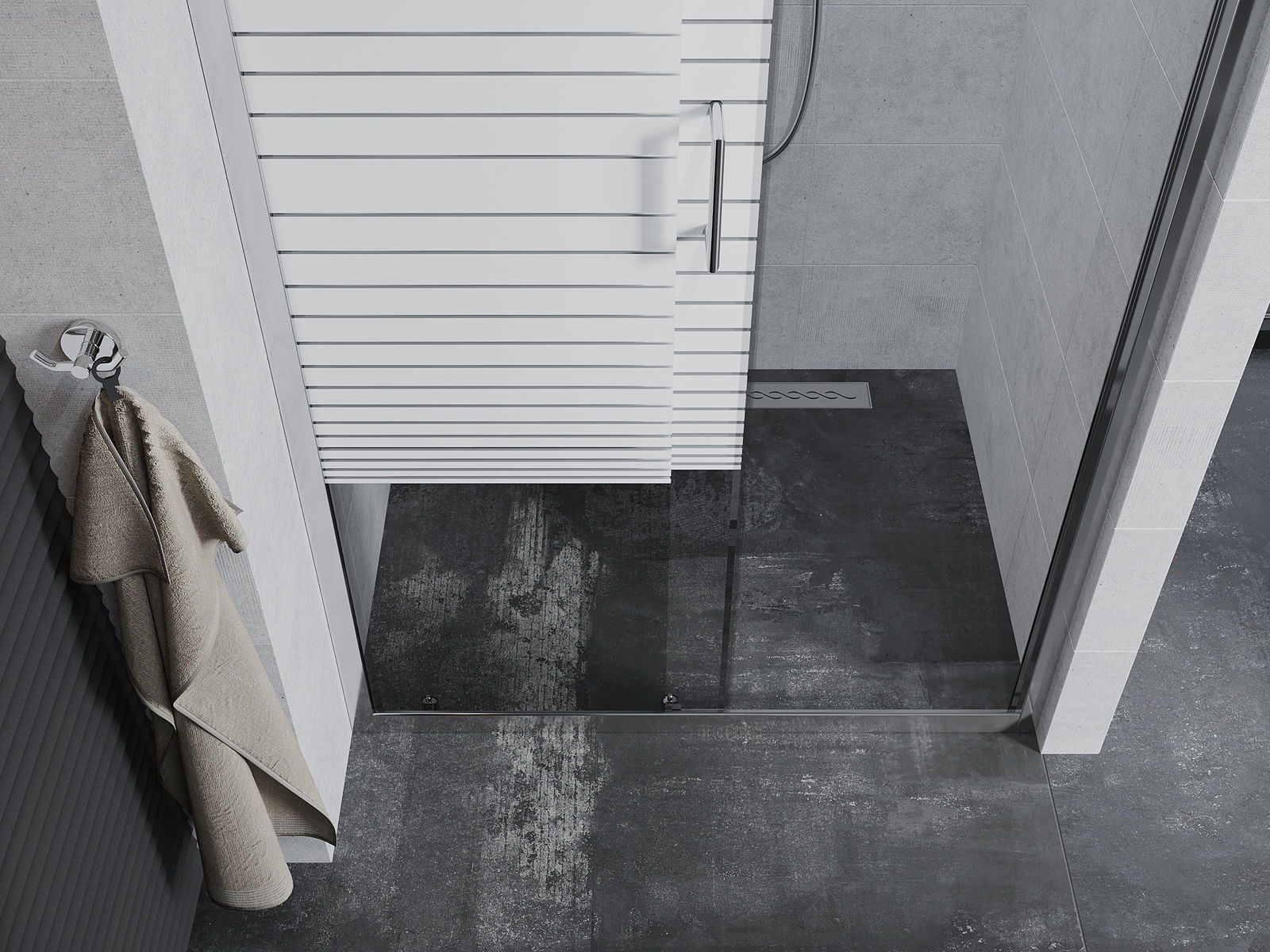 Dzięki zastosowaniu uniwersalnego systemu mocowania, drzwi prysznicowe mogą zostać zamontowane z prawej lub z lewej strony, zależnie od potrzeb. Dzięki temu możesz z łatwością zaprojektować prysznic dopasowany do przestrzeni łazienki.