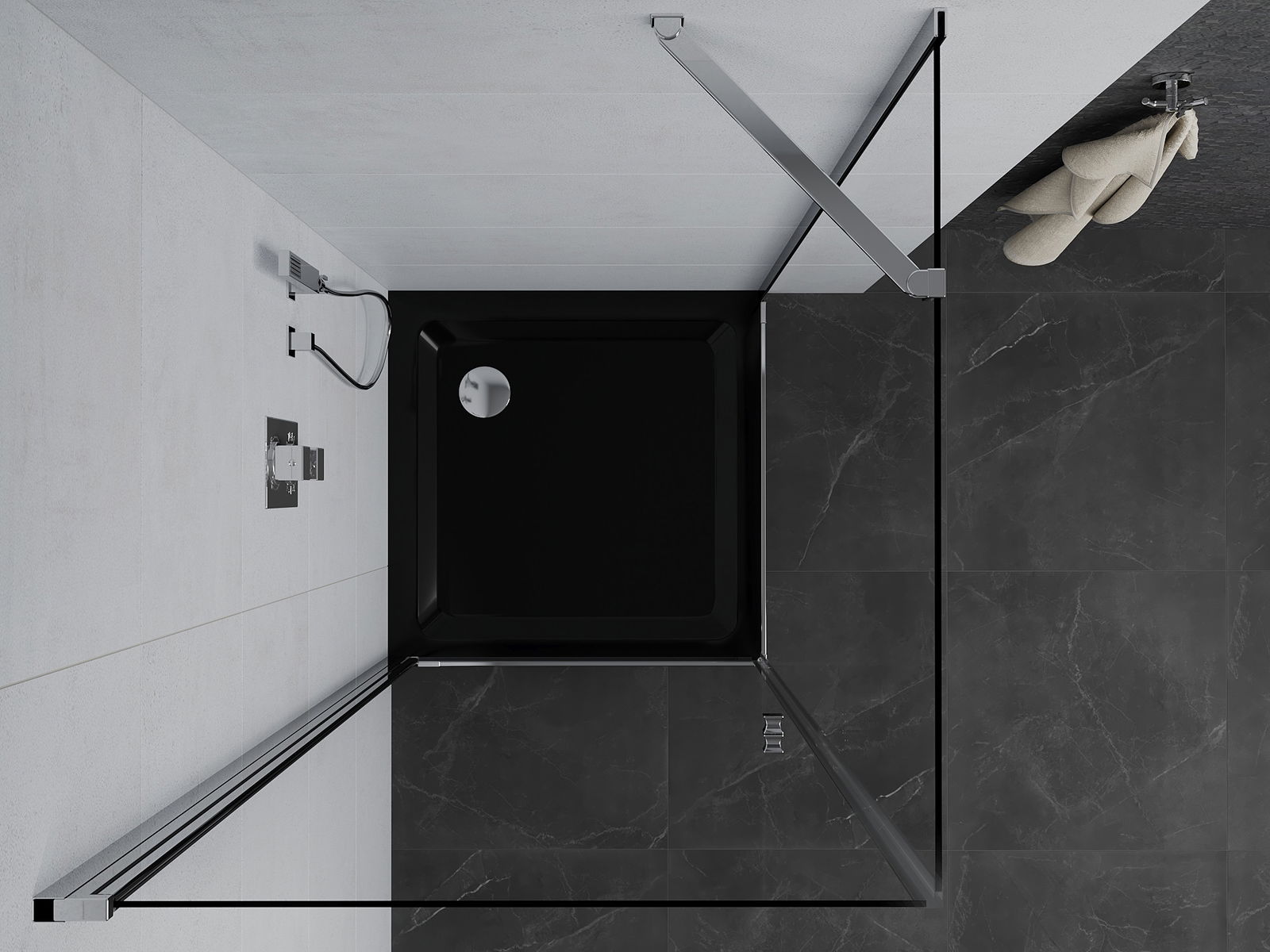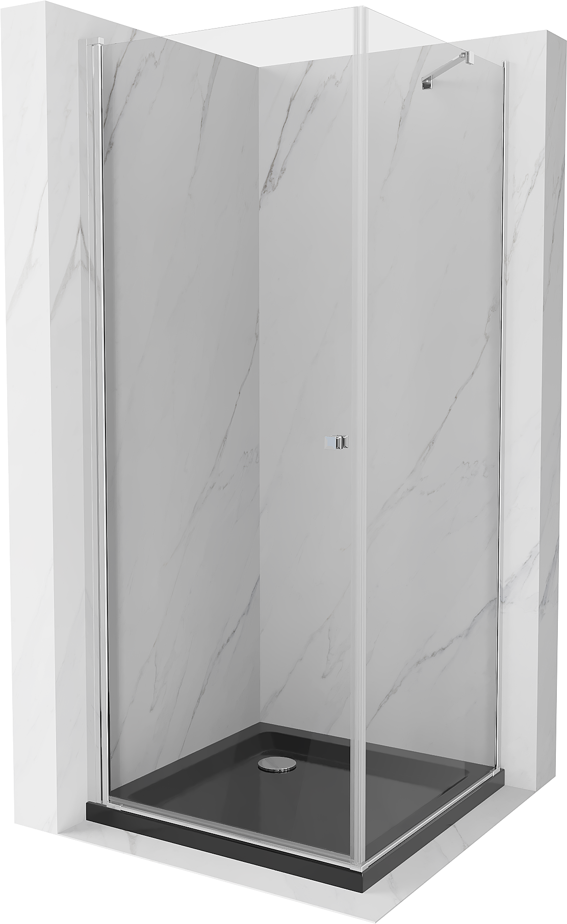 Mexen Pretoria kabina prysznicowa uchylna 80 x 80 cm, transparent, chrom + brodzik Flat, czarny - 852-080-080-01-00-4070