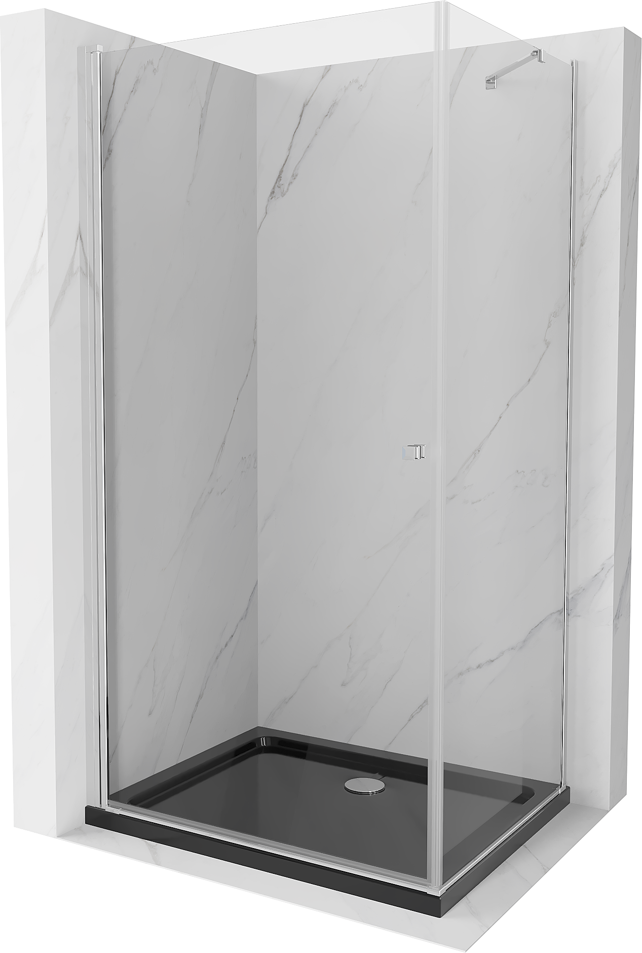 Mexen Pretoria kabina prysznicowa uchylna 90 x 80 cm, transparent, chrom + brodzik Flat, czarny - 852-090-080-01-00-4070