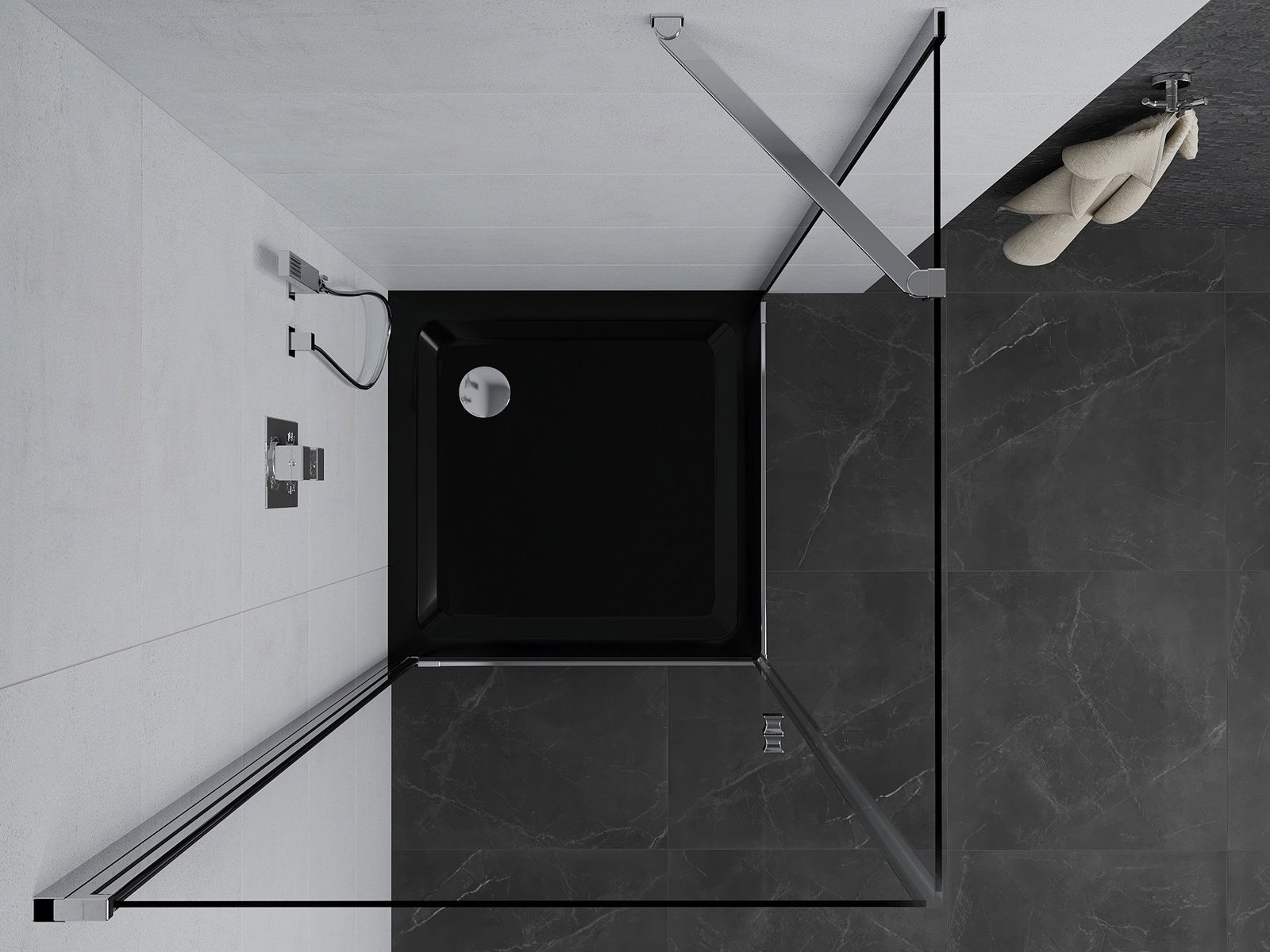 Poręczny i wygodny uchwyt został wykonany z trwałego i odpornego metalu. Modny kształt w połączeniu z wykończeniem dopasowanym do koloru profili nadaje całości nowoczesnego i stylowego wyglądu, podkreślając estetykę każdej łazienki.