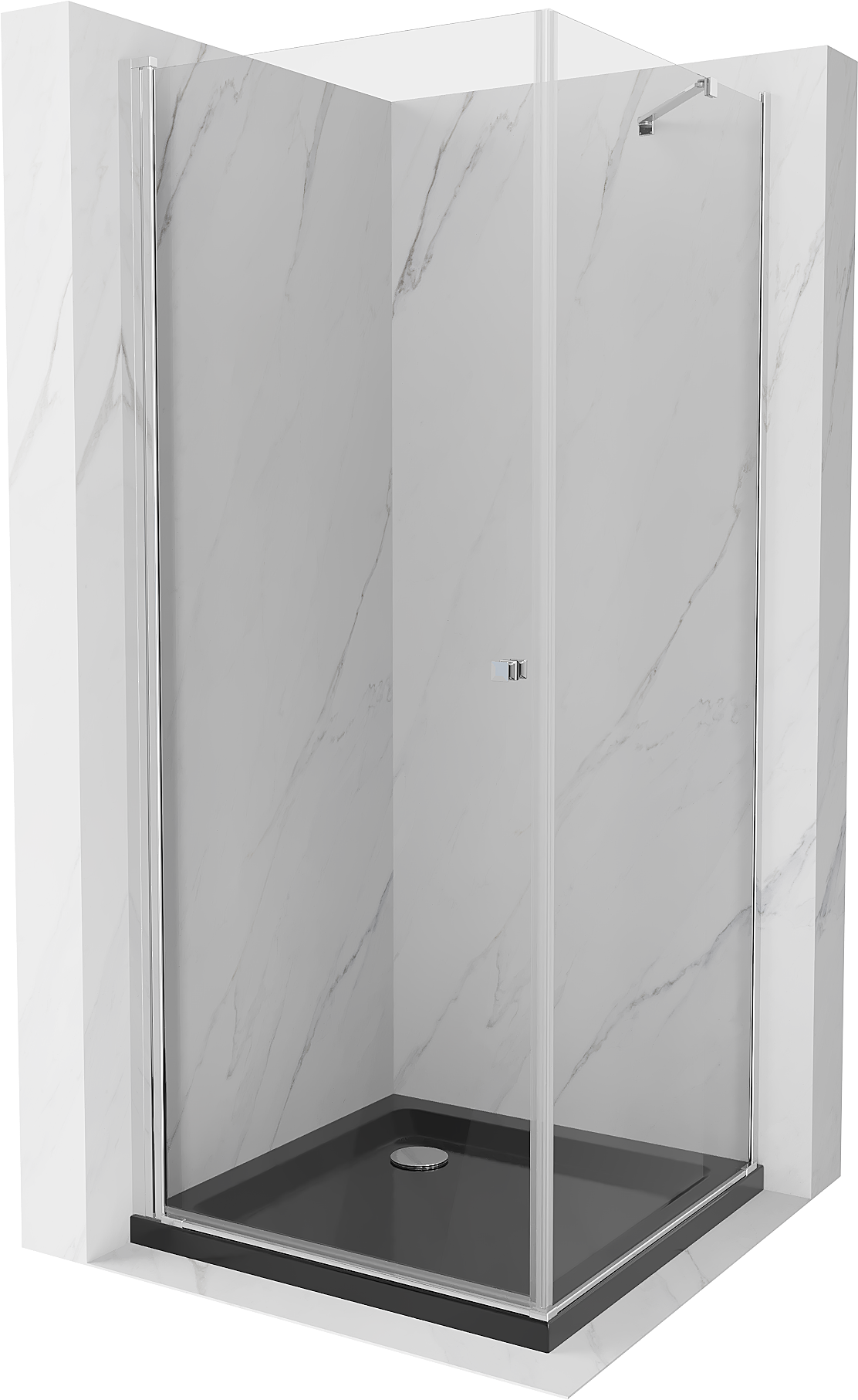 Mexen Pretoria kabina prysznicowa uchylna 100 x 100 cm, transparent, chrom + brodzik Flat, czarny - 852-100-100-01-00-4070