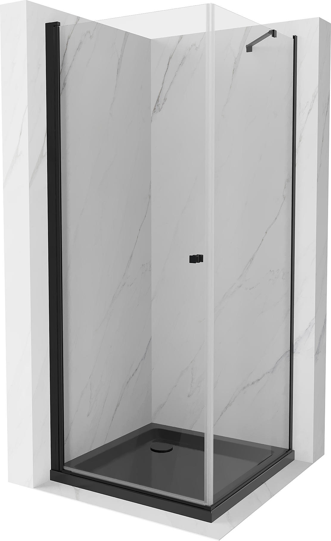 Mexen Pretoria kabina prysznicowa uchylna 70 x 70 cm, transparent, czarna + brodzik Flat, czarny - 852-070-070-70-00-4070B
