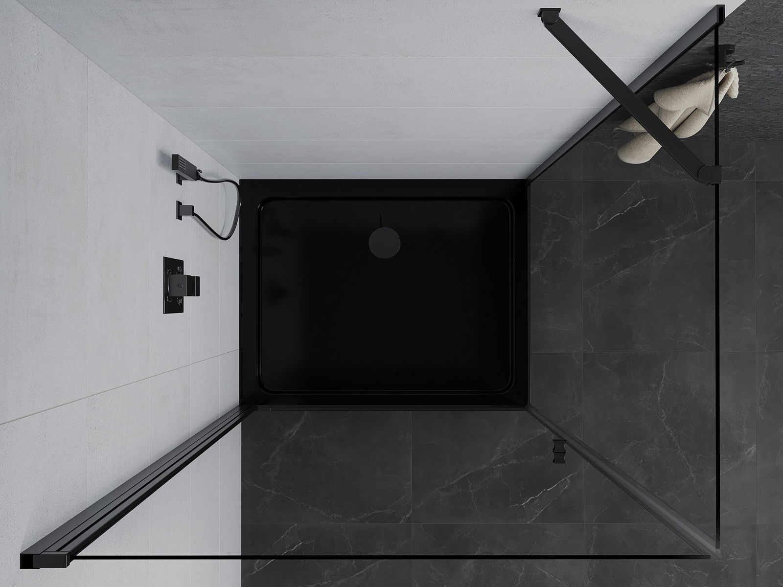 Poręczny i wygodny uchwyt został wykonany z trwałego i odpornego metalu. Modny kształt w połączeniu z wykończeniem dopasowanym do koloru profili nadaje całości nowoczesnego i stylowego wyglądu, podkreślając estetykę każdej łazienki.