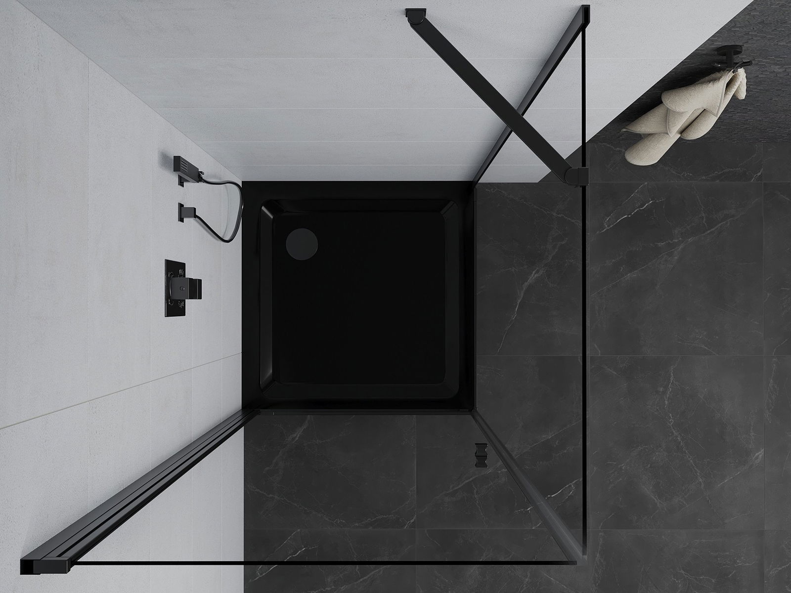 Rozmiar: 90x90 cm (drzwi 90 cm, ścianka 90 cm)