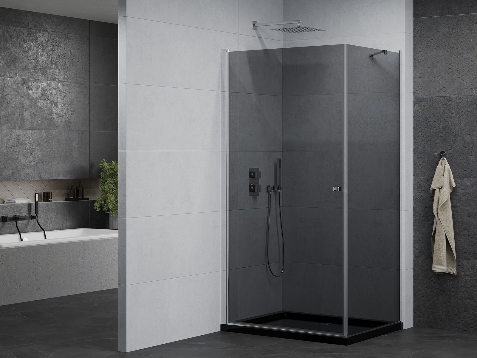 Mexen Pretoria kabina prysznicowa uchylna 80 x 90 cm, grafit, chrom + brodzik Flat, czarny - 852-080-090-01-40-4070