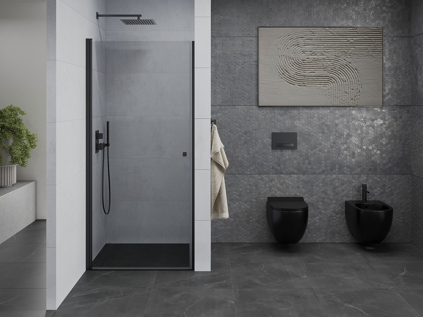 Dzięki zastosowaniu uniwersalnego systemu mocowania, drzwi prysznicowe mogą zostać zamontowane z prawej lub z lewej strony, zależnie od potrzeb. Dzięki temu możesz z łatwością zaprojektować prysznic dopasowany do przestrzeni łazienki.