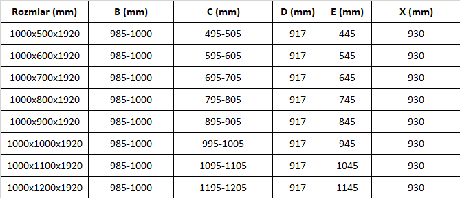 Rozmiar: 100x80 cm (drzwi 100 cm, ścianka 80 cm)