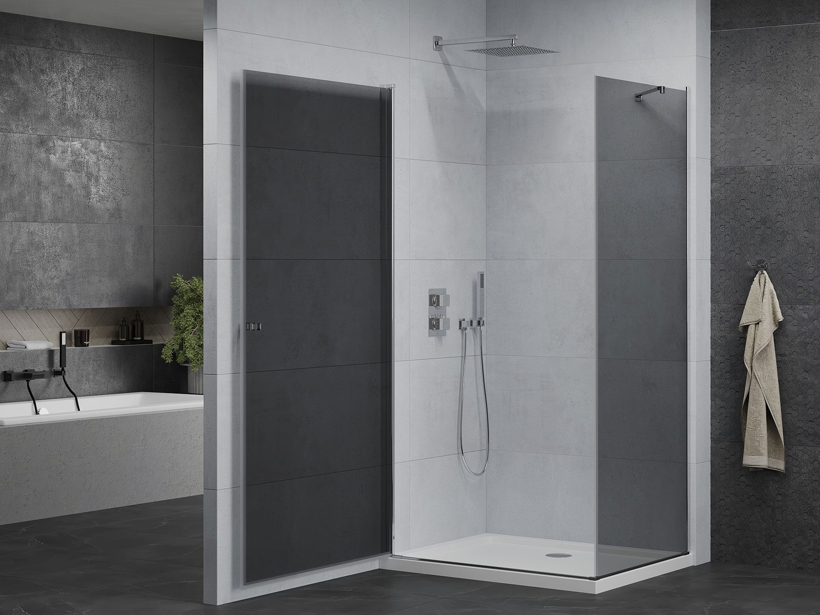 Dzięki zastosowaniu uniwersalnego systemu mocowania, drzwi prysznicowe mogą zostać zamontowane z prawej lub z lewej strony, zależnie od potrzeb. Dzięki temu możesz z łatwością zaprojektować prysznic dopasowany do przestrzeni łazienki.