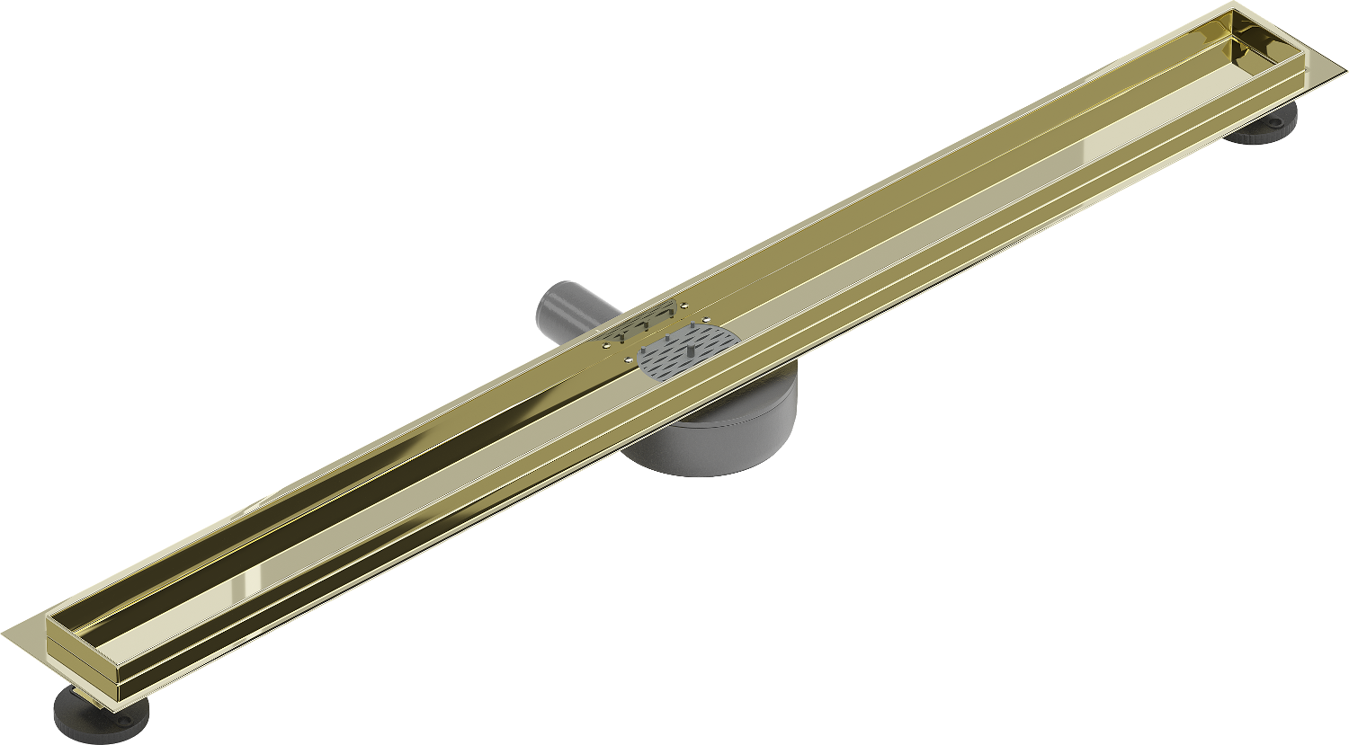 Dane techniczne:  Materiał: Stal nierdzewna AISI 304 Wykończenie: Złoty Szerokość: 100 cm Głębokość montażu: 52 mm Przepustowość: 50 l/min Do kompletowania z maskownicami M W zestawie:  Stabilizatory montażu Regulowane nóżki Wyjmowany filtr zanieczyszczeń Kołnierz okalający - 2 cm Syfon obrotowy zatrzymujący przykre zapachy Rynna odprowadzająca wodę Redukcja 50/40 mm