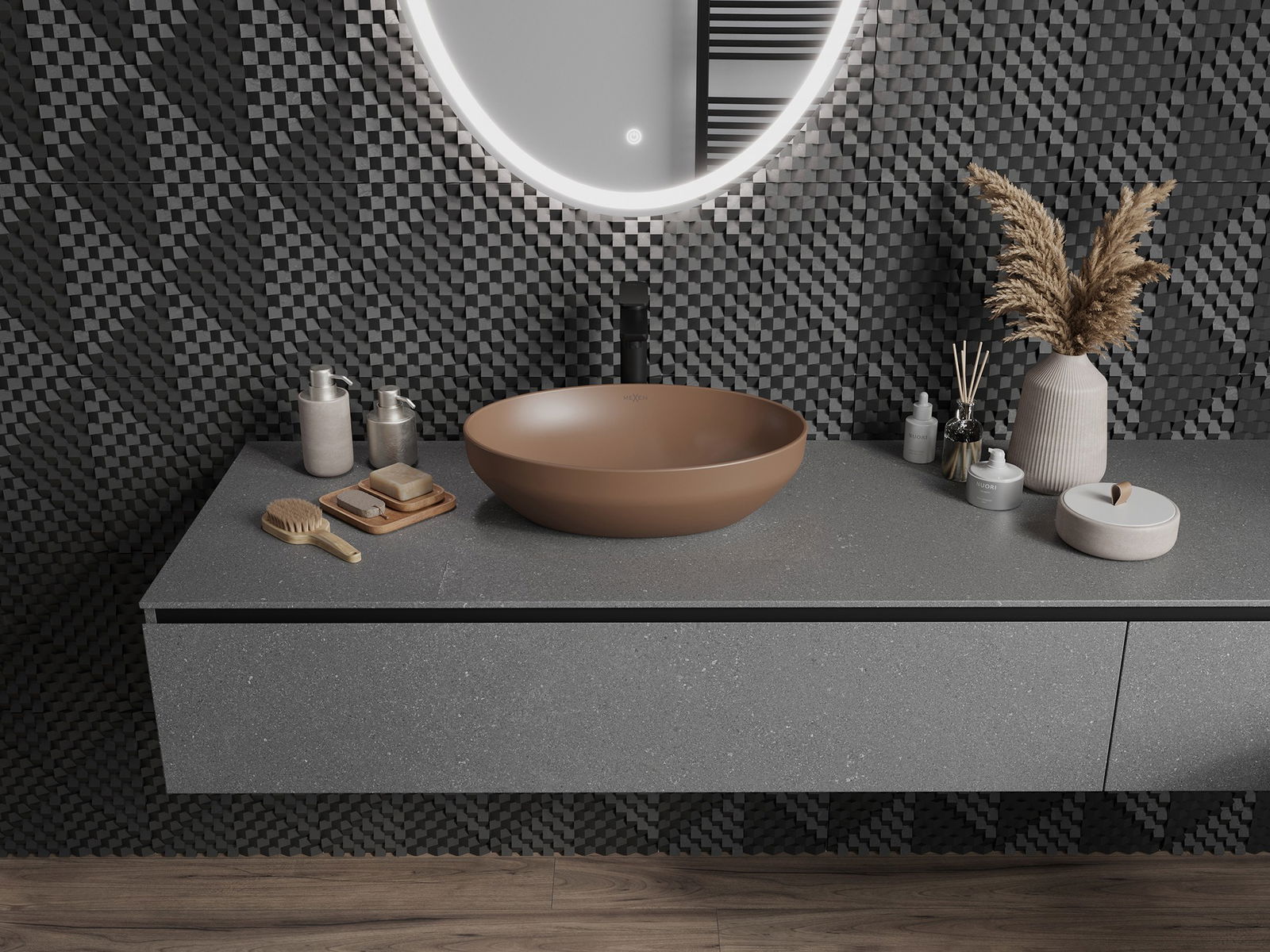 Matowa powierzchnia ceramiki doskonale podkreśla charakter koloru produktu, nadając mu wyjątkowe i wyraziste wykończenie. Subtelna struktura matowej ceramiki wprowadza do łazienki elegancję, tworząc estetyczną przestrzeń.