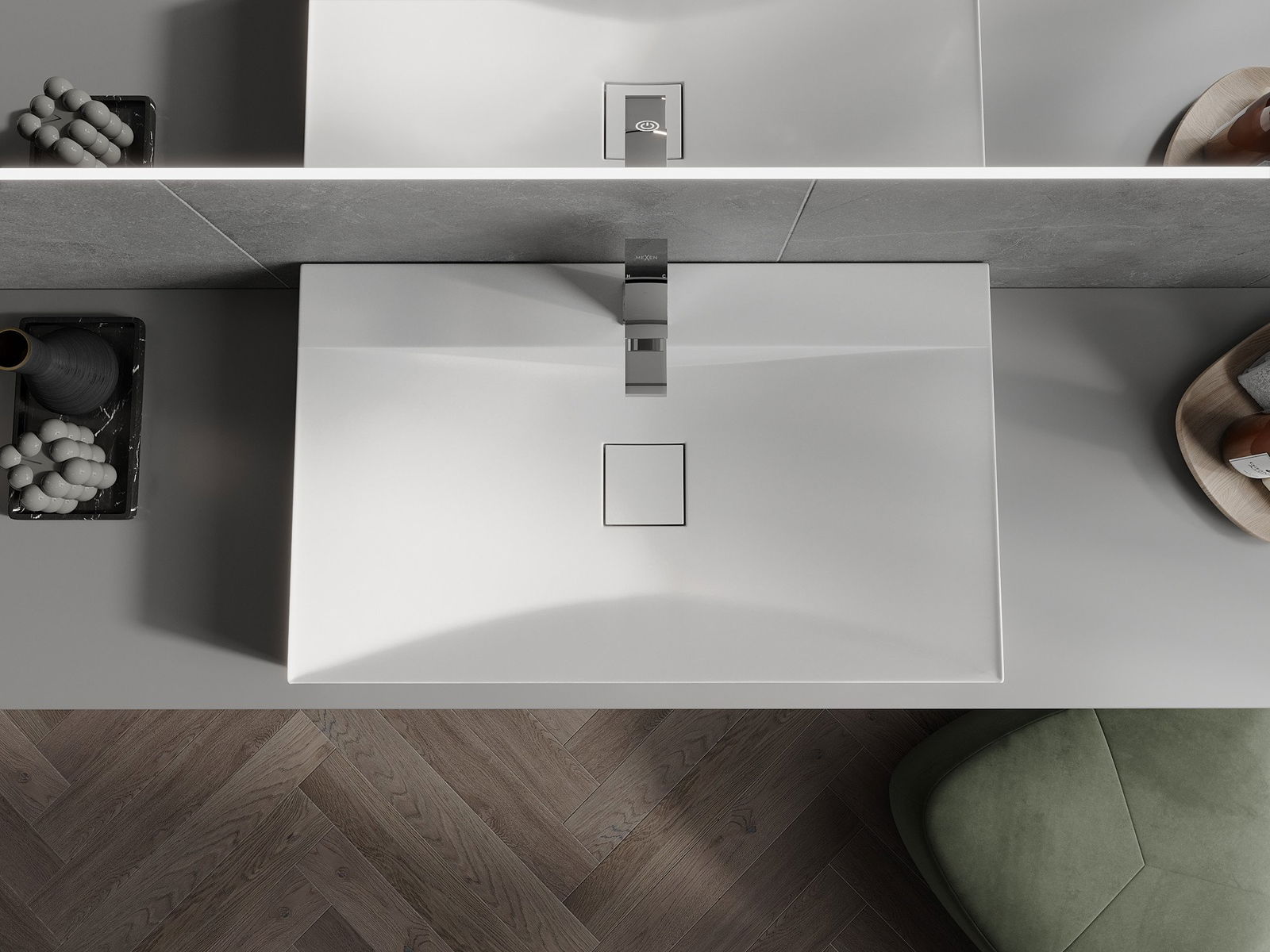 Umywalka posiada otwór, w którym możemy zamontować baterię. Pozwala to zaoszczędzić cenną przestrzeń w łazience oraz podkreślić jej estetykę. Rozwiązanie to umożliwia również łatwiejsze utrzymanie czystości wokół umywalki.
