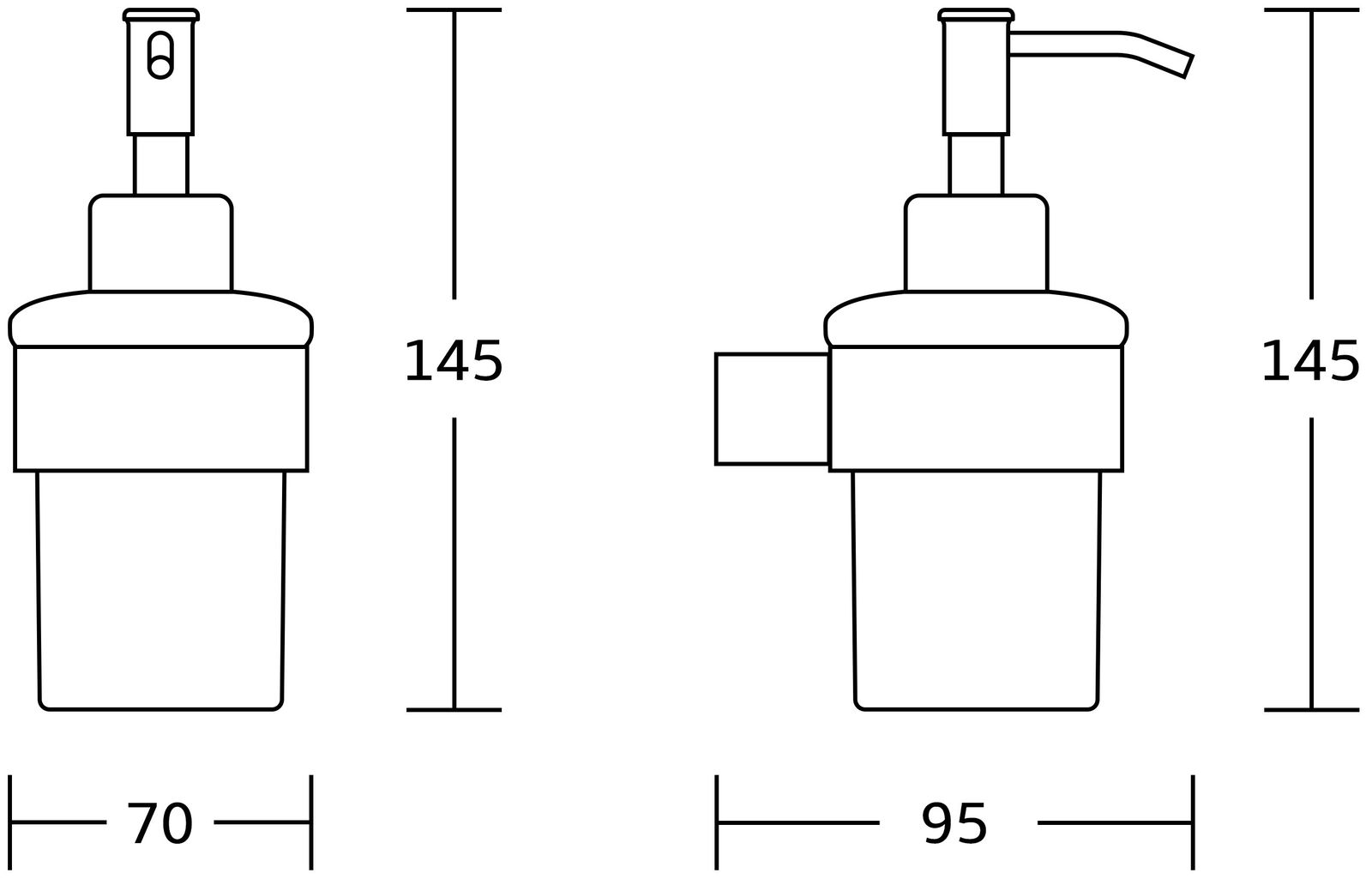Dane techniczne: Materiał: Metal + Szkło Wykończenie: Czarny Pojemność: 180 ml Szerokość: 7 cm Wysokość: 14,5 cm Odległość od ściany: 9,5 cm