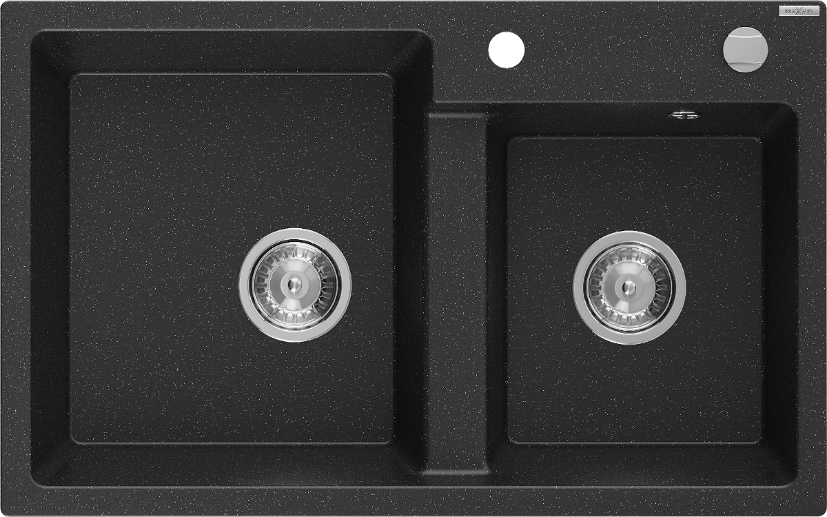 Mexen Tomas zlewozmywak granitowy 2-komorowy 800 x 500 mm, czarny/srebrny metalik, syfon chrom - 6516802000-73