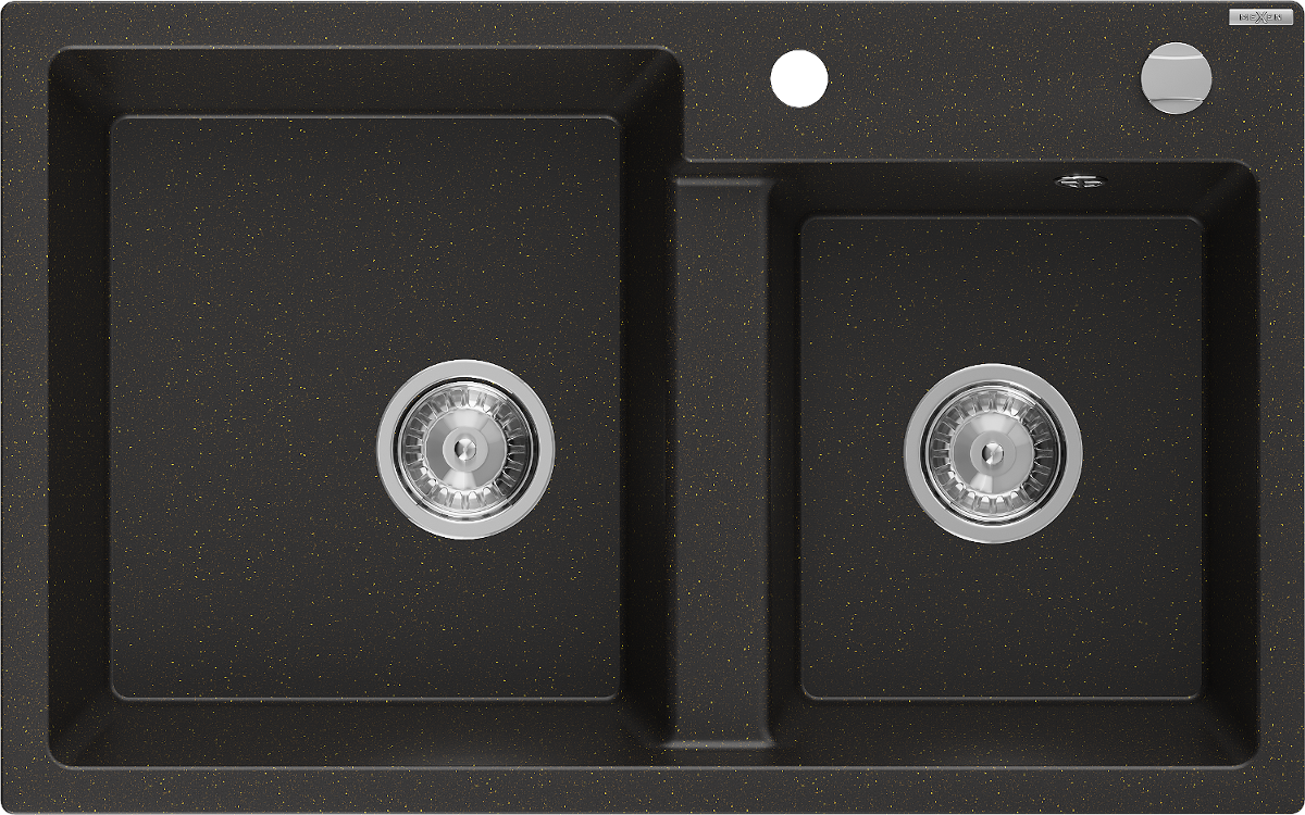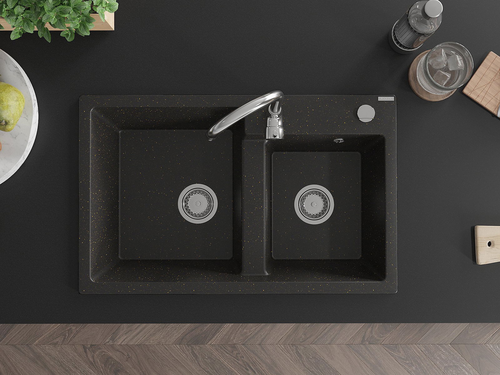 Mexen Tomas zlewozmywak granitowy 2-komorowy 800 x 500 mm, czarny/złoty metalik, syfon chrom - 6516802000-75