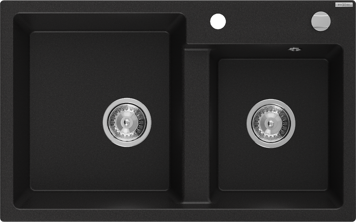 Mexen Tomas zlewozmywak granitowy 2-komorowy 800 x 500 mm, czarny, syfon chrom - 6516802000-77