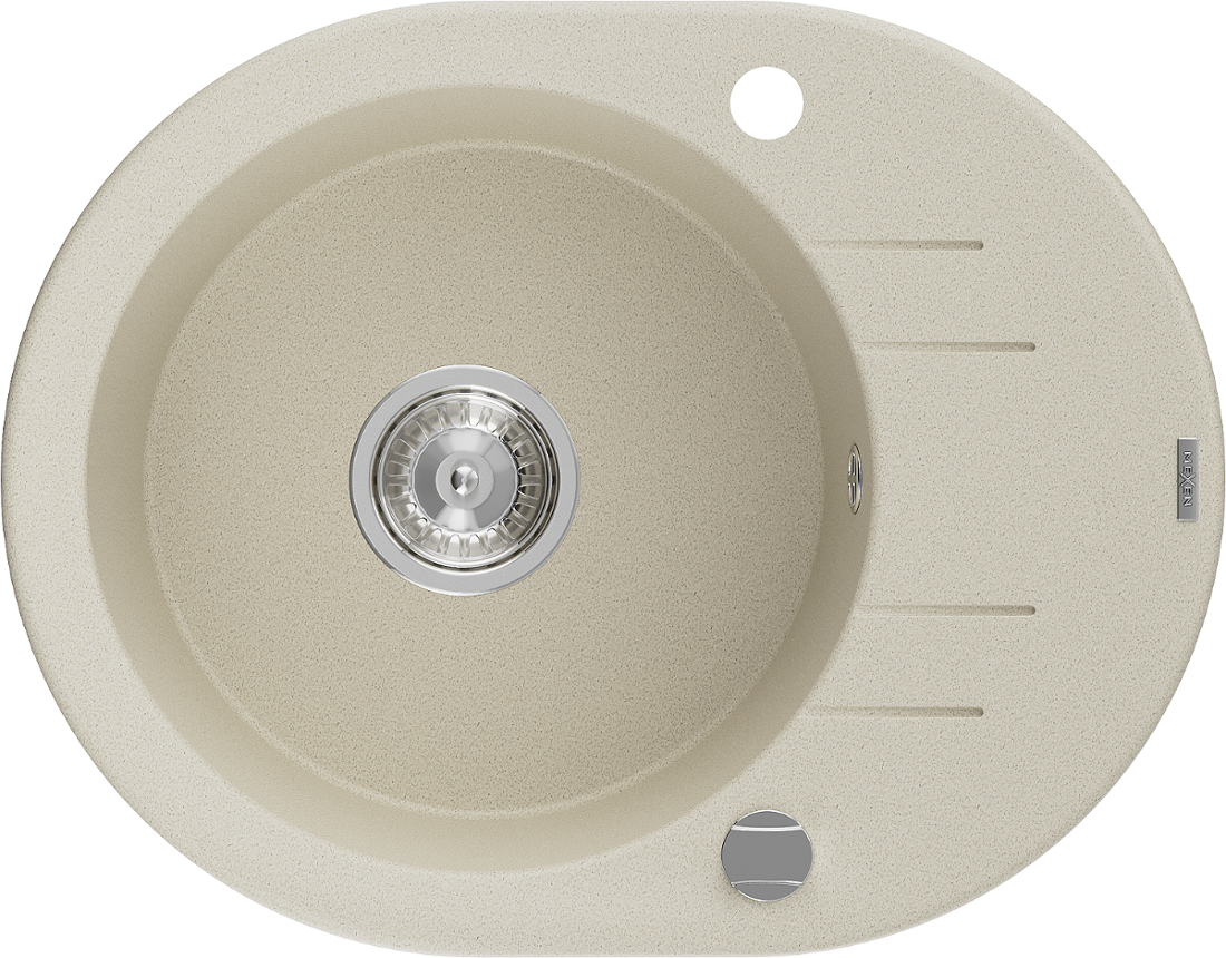 Mexen Kevin zlewozmywak granitowy 1-komorowy z ociekaczem 586 x 458 mm, beżowy, syfon chrom - 6517581005-69