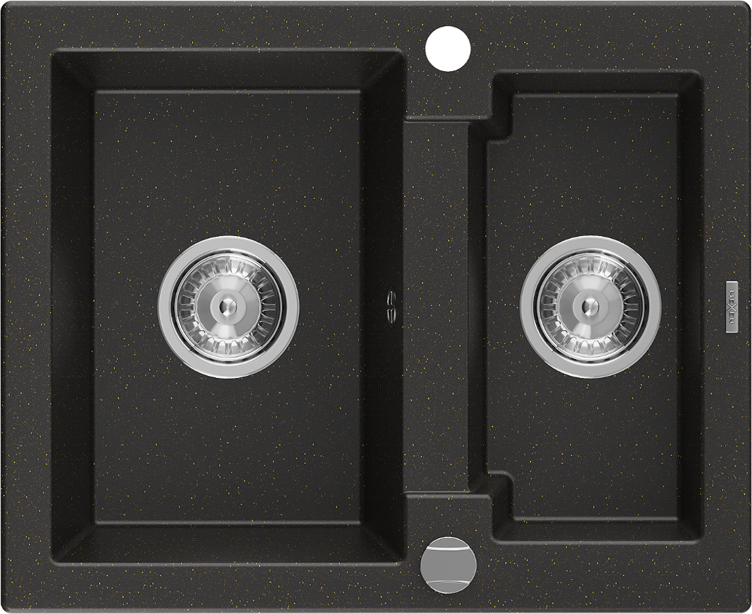 Mexen Carlos zlewozmywak granitowy 1,5-komorowy 582 x 475 mm, czarny/złoty metalik, syfon chrom - 6518581500-75