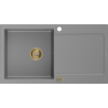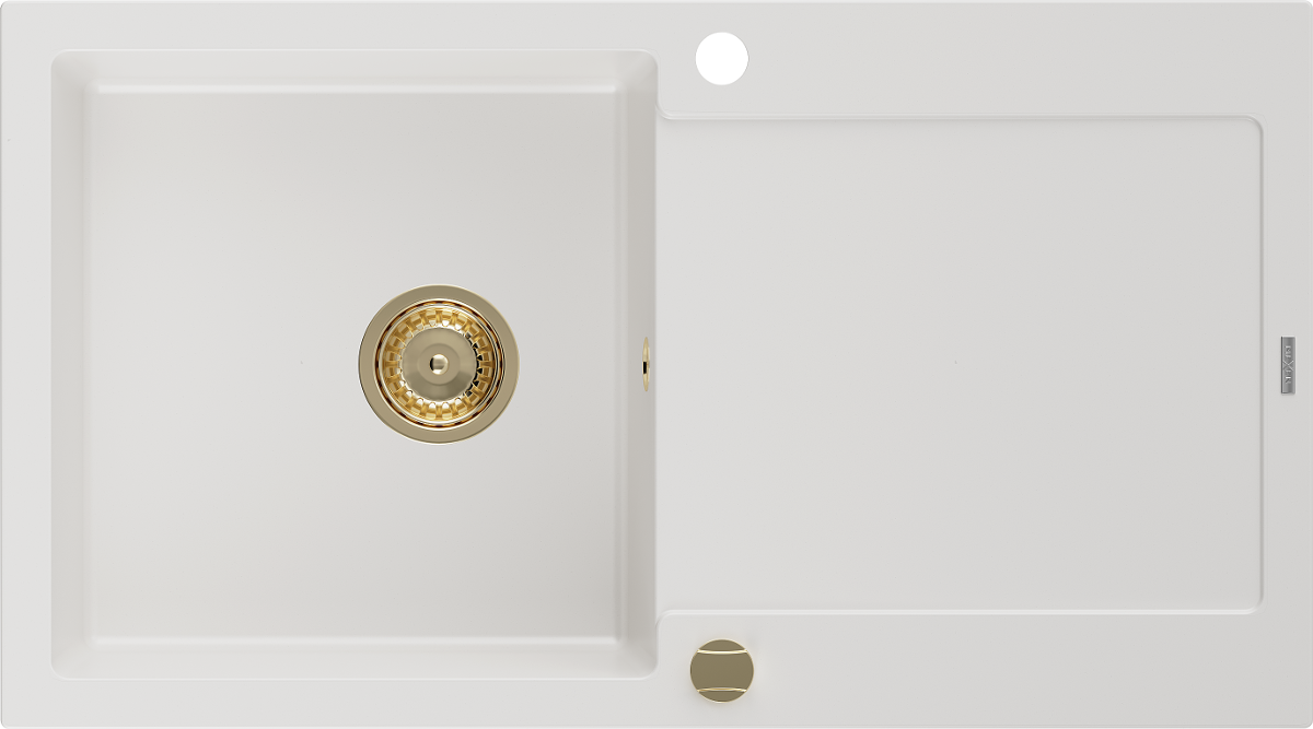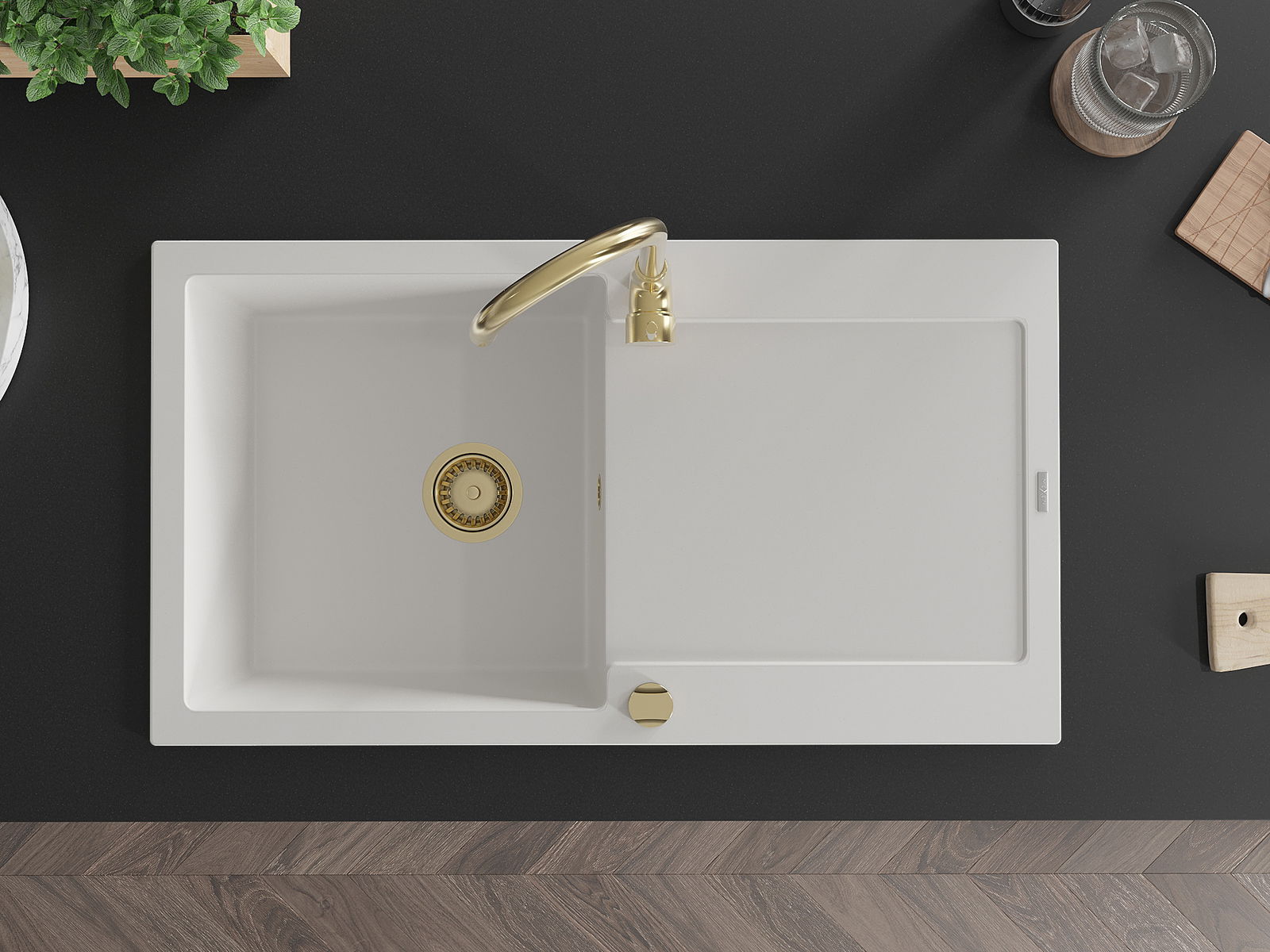 Mexen Leo zlewozmywak granitowy 1-komorowy z ociekaczem 900 x 500 mm, biały, syfon złoty - 6501901010-20-G