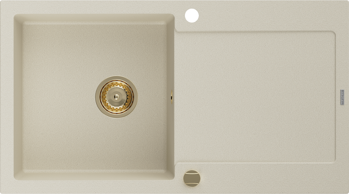 Mexen Leo zlewozmywak granitowy 1-komorowy z ociekaczem 900 x 500 mm, beżowy, syfon złoty - 6501901010-69-G