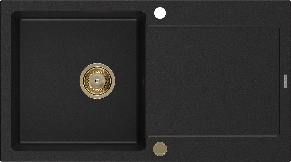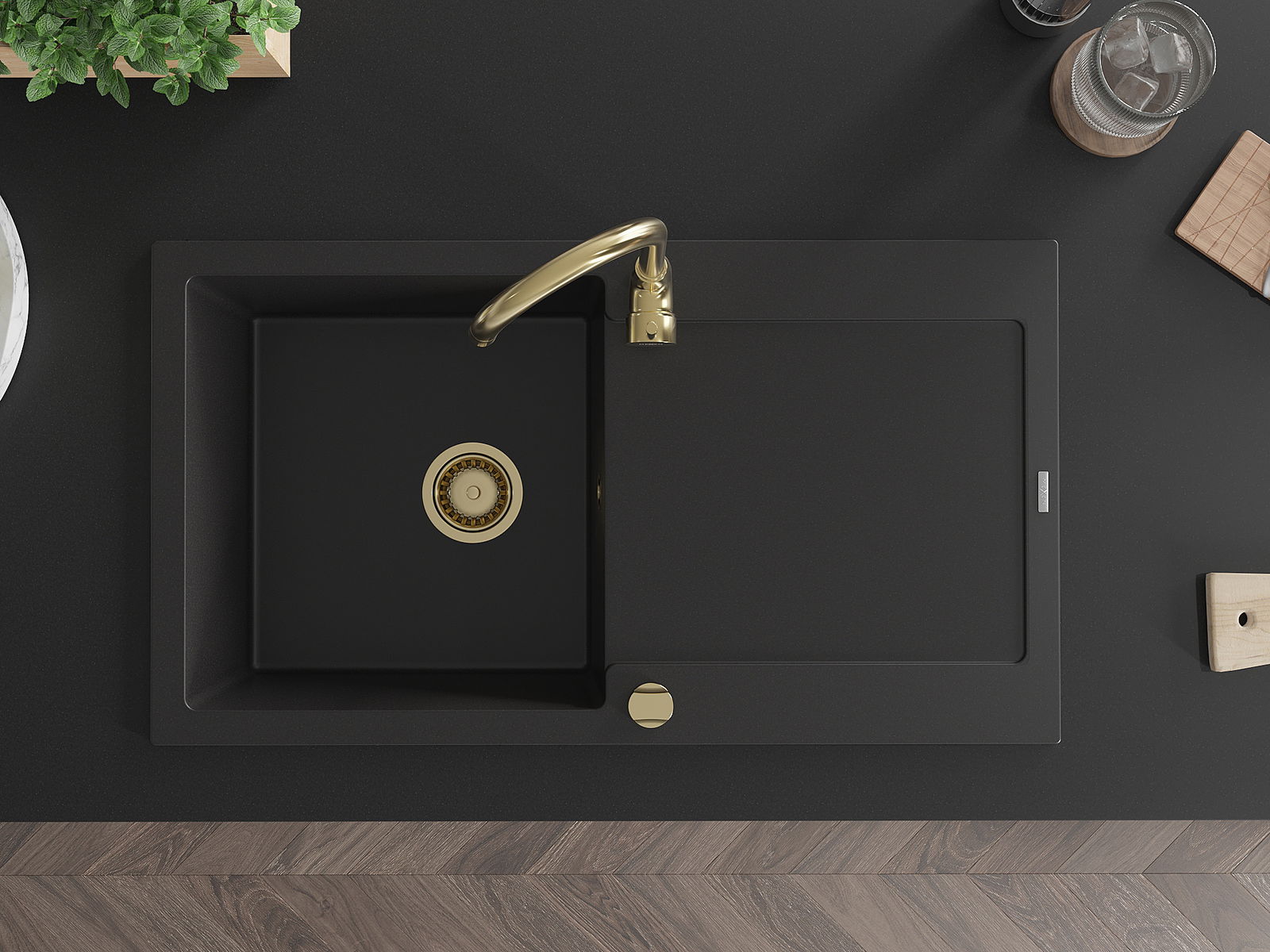 Mexen Leo zlewozmywak granitowy 1-komorowy z ociekaczem 900 x 500 mm, czarny, syfon złoty - 6501901010-77-G