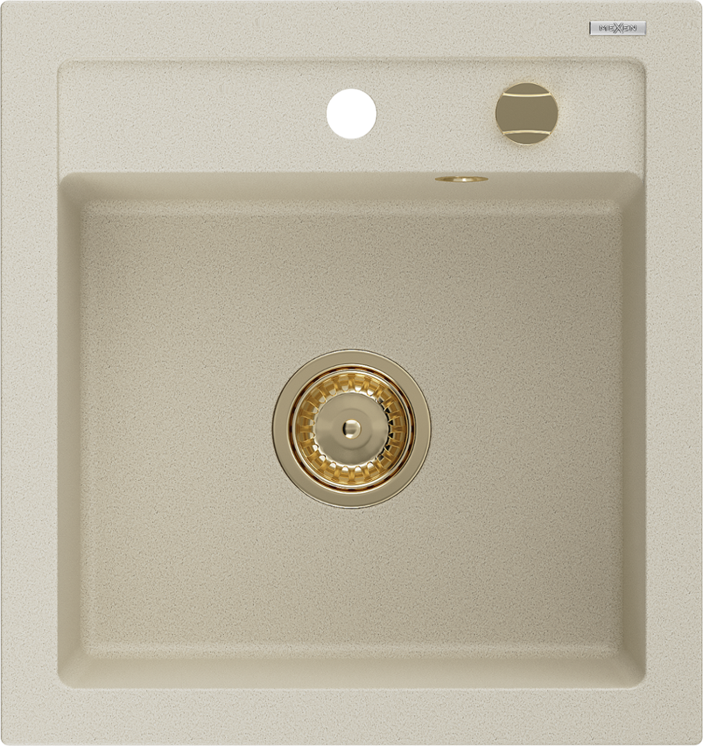 Mexen Vito zlewozmywak granitowy 1-komorowy 520 x 490 mm, beżowy, syfon złoty - 6503521000-69-G