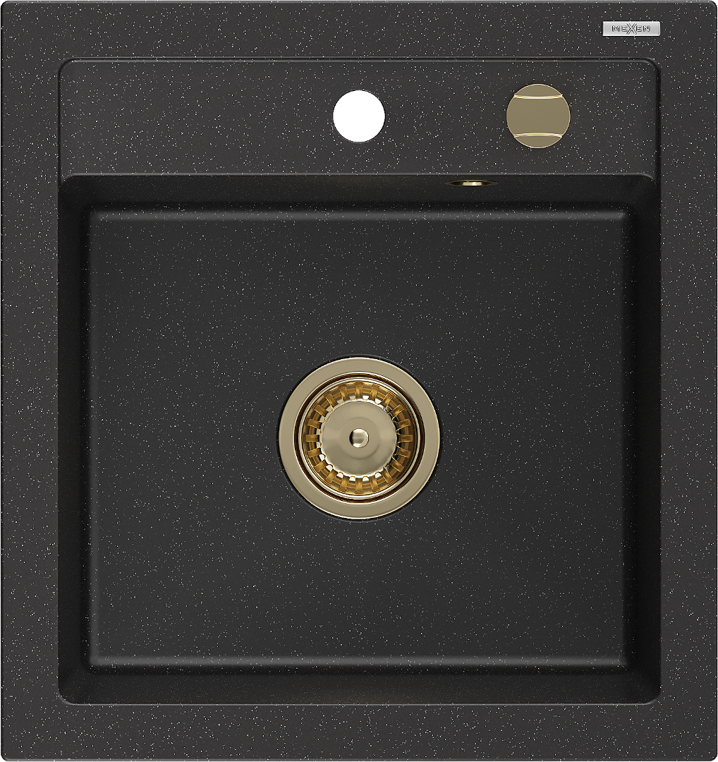 Mexen Vito zlewozmywak granitowy 1-komorowy 520 x 490 mm, czarny/srebrny metalik, syfon złoty - 6503521000-73-G