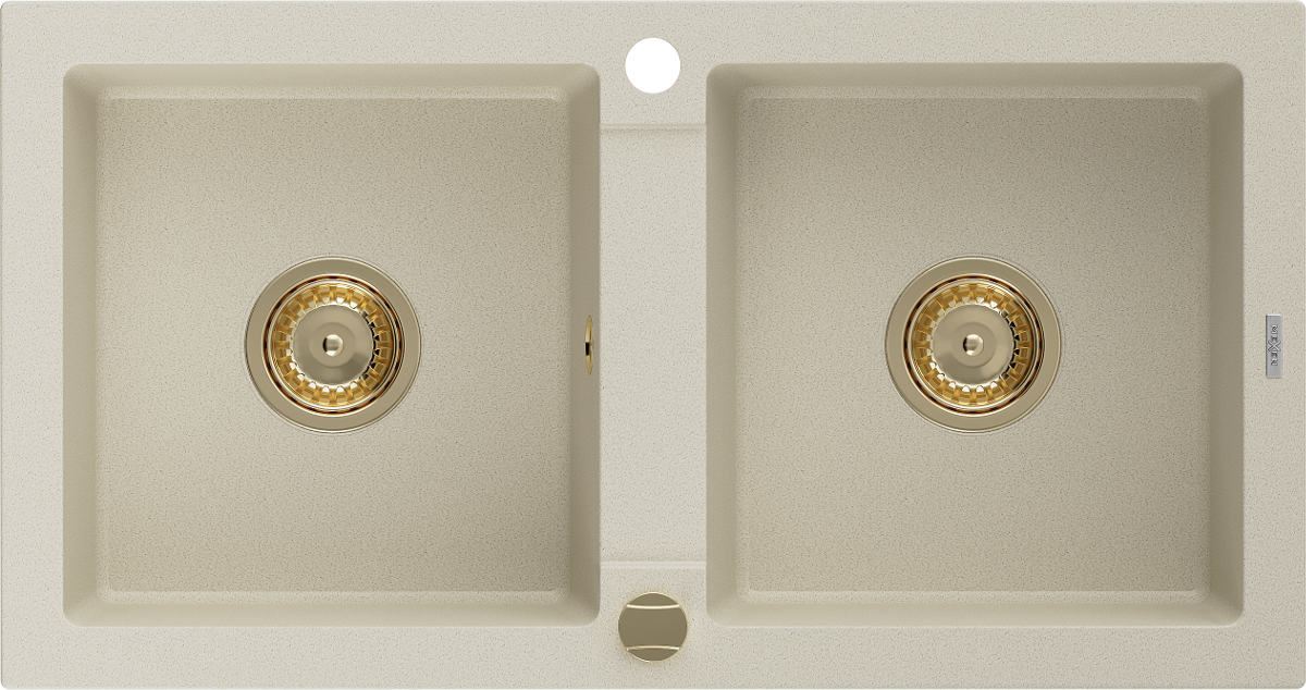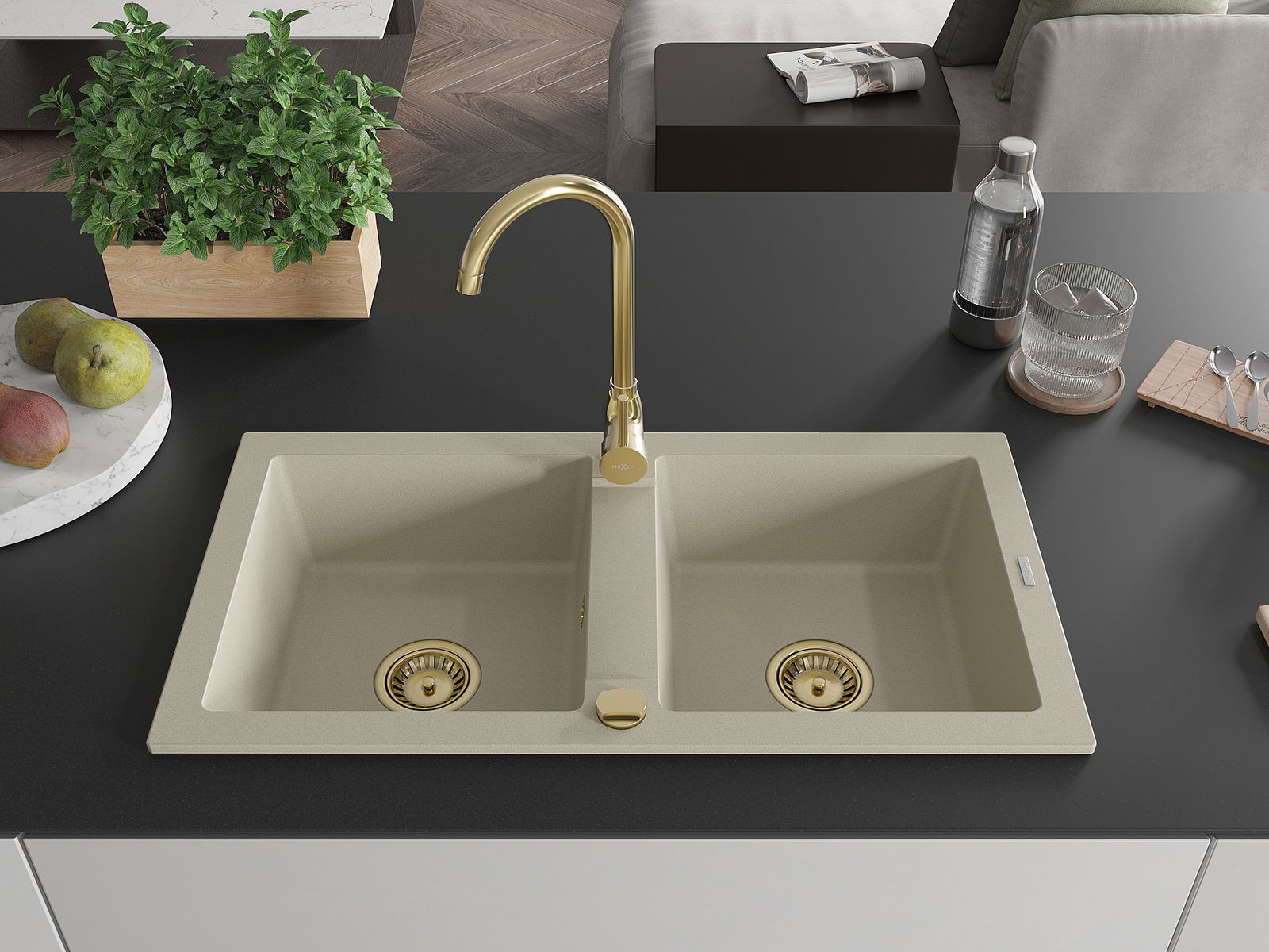 Mexen Mario zlewozmywak granitowy 2-komorowy 820 x 436 mm, beżowy, syfon złoty - 6504822000-69-G