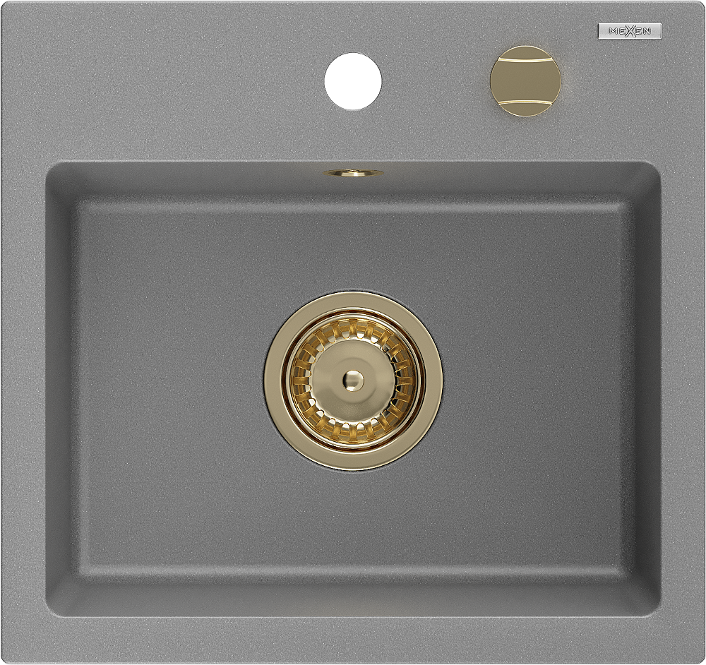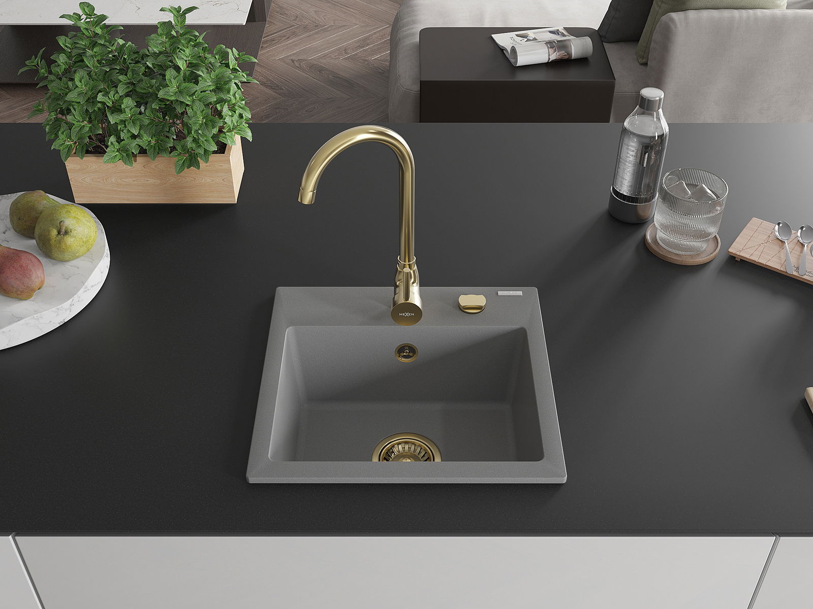 Mexen Milo zlewozmywak granitowy 1-komorowy 435 x 410 mm, szary, syfon złoty - 6505441000-71-G
