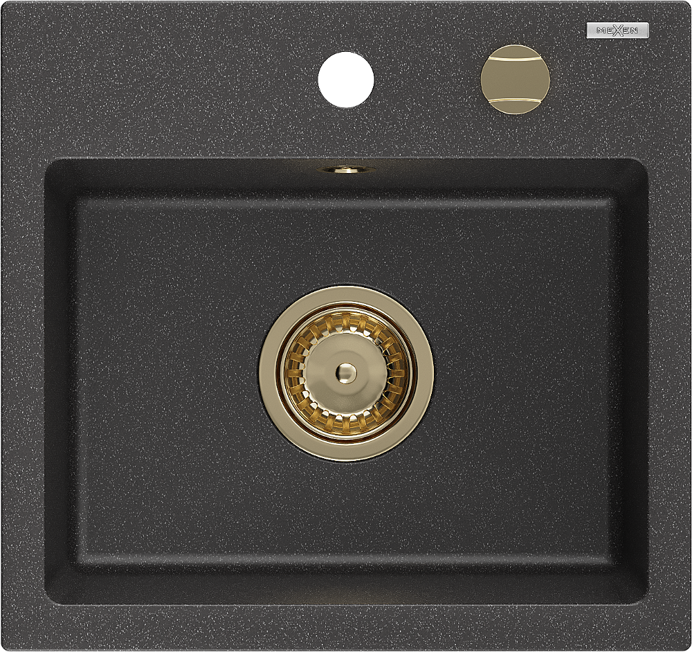 Mexen Milo zlewozmywak granitowy 1-komorowy 435 x 410 mm, czarny nakrapiany, syfon złoty - 6505441000-76-G