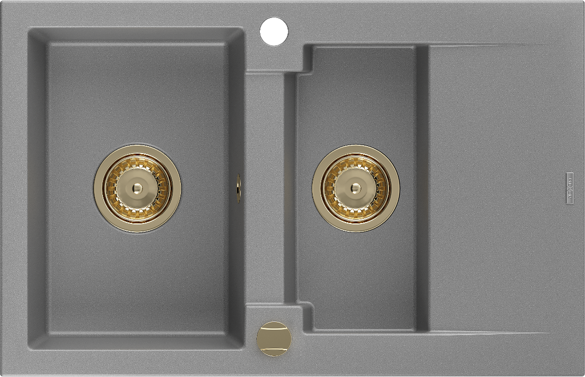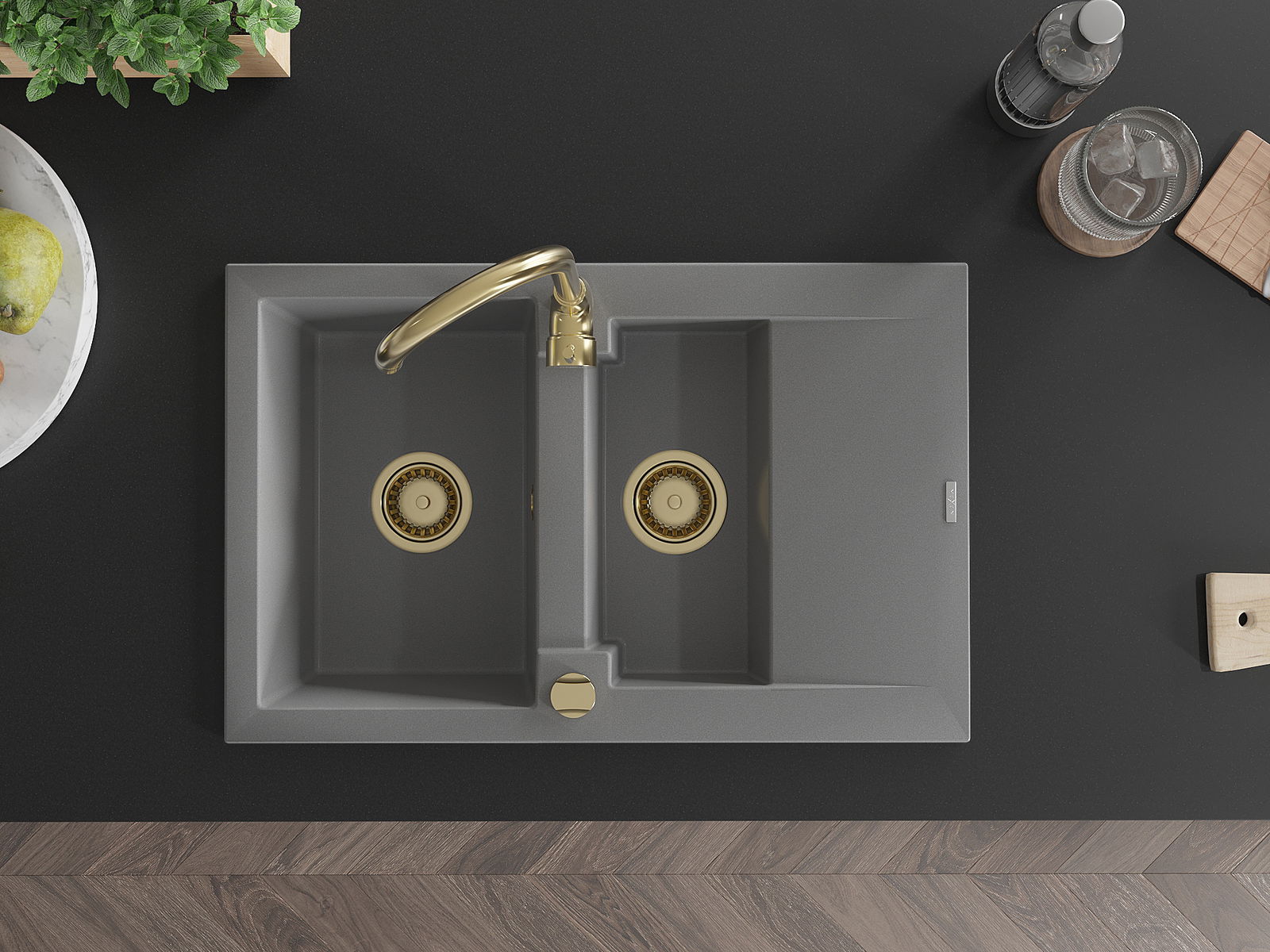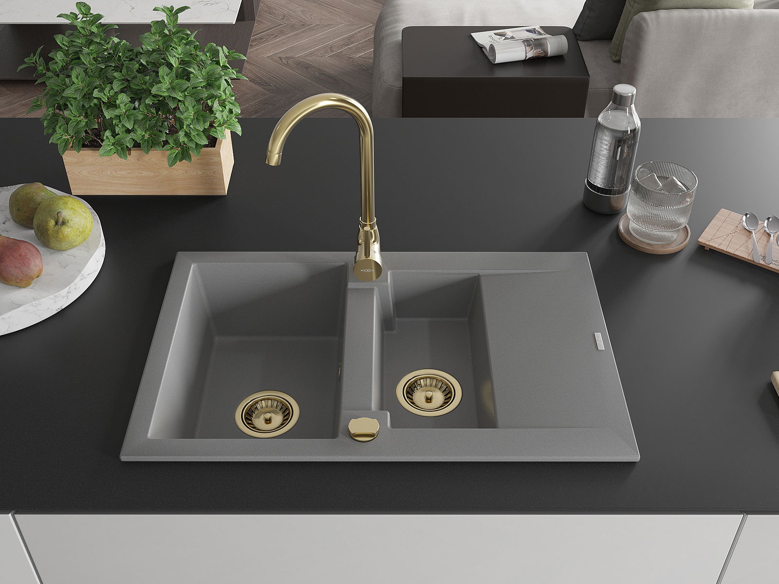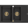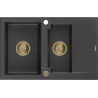 Mexen Gaspar zlewozmywak granitowy 1,5-komorowy z ociekaczem 737 x 475 mm, szary, syfon złoty - 6507731505-71-G