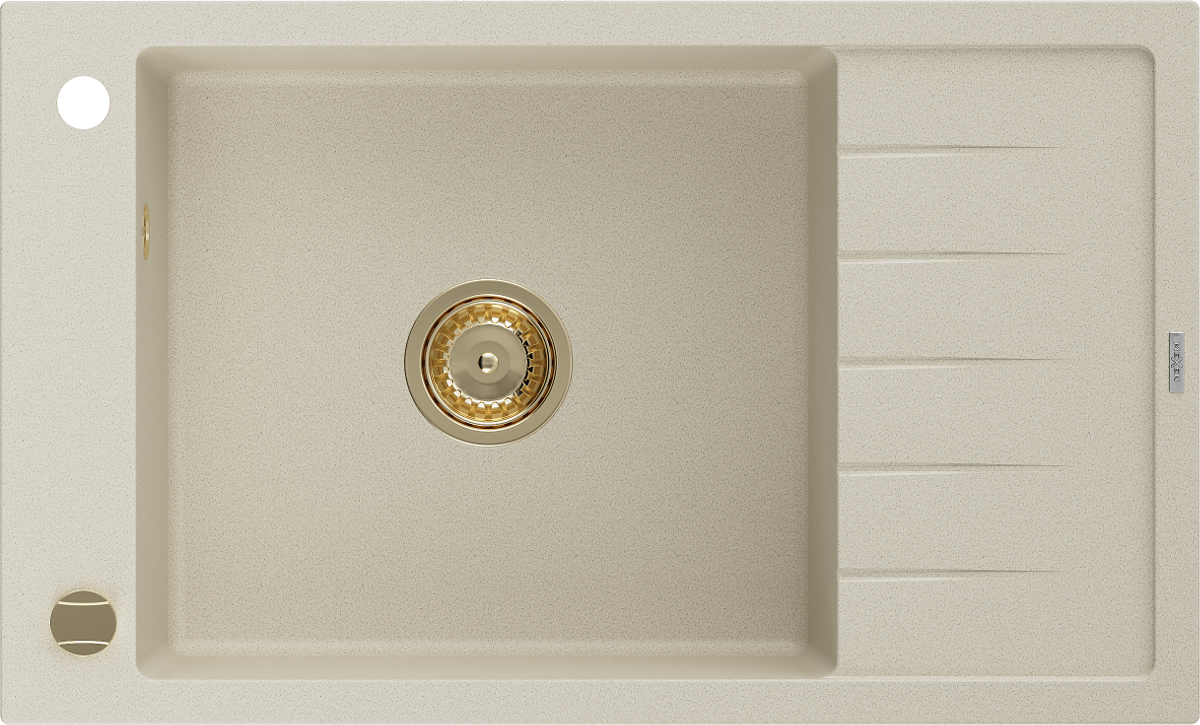 Mexen Elias zlewozmywak granitowy 1-komorowy z ociekaczem 795 x 480 mm, beżowy, syfon złoty - 6511791005-69-G