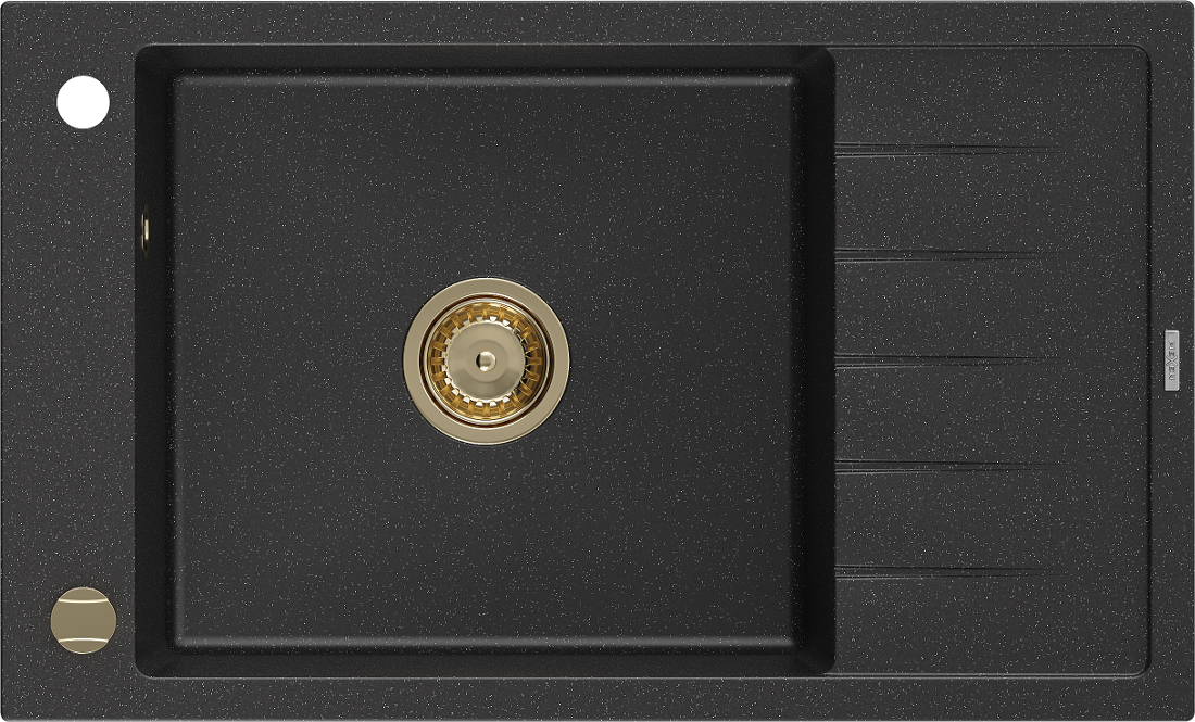 Mexen Elias zlewozmywak granitowy 1-komorowy z ociekaczem 795 x 480 mm, czarny/srebrny metalik, syfon złoty - 6511791005-73-G