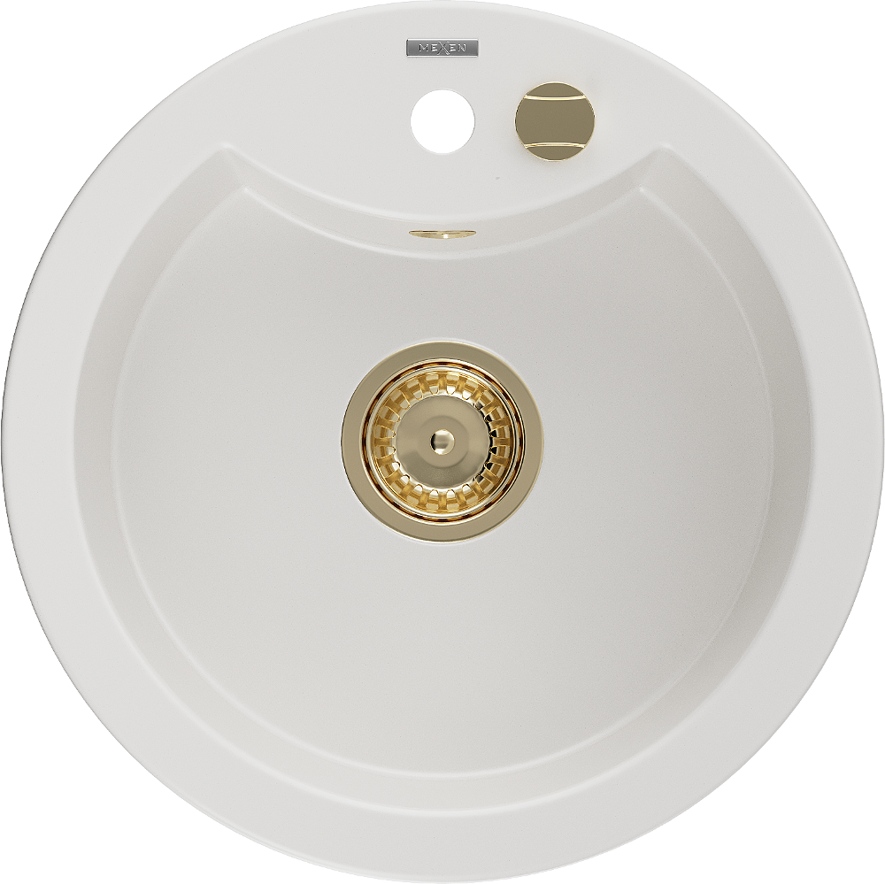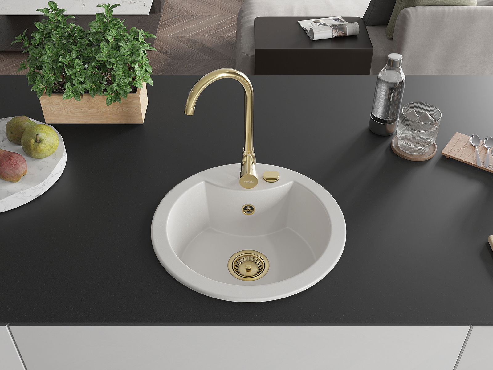 Mexen Diego zlewozmywak granitowy 1-komorowy 488 x 480 mm, biały, syfon złoty - 6512481000-20-G