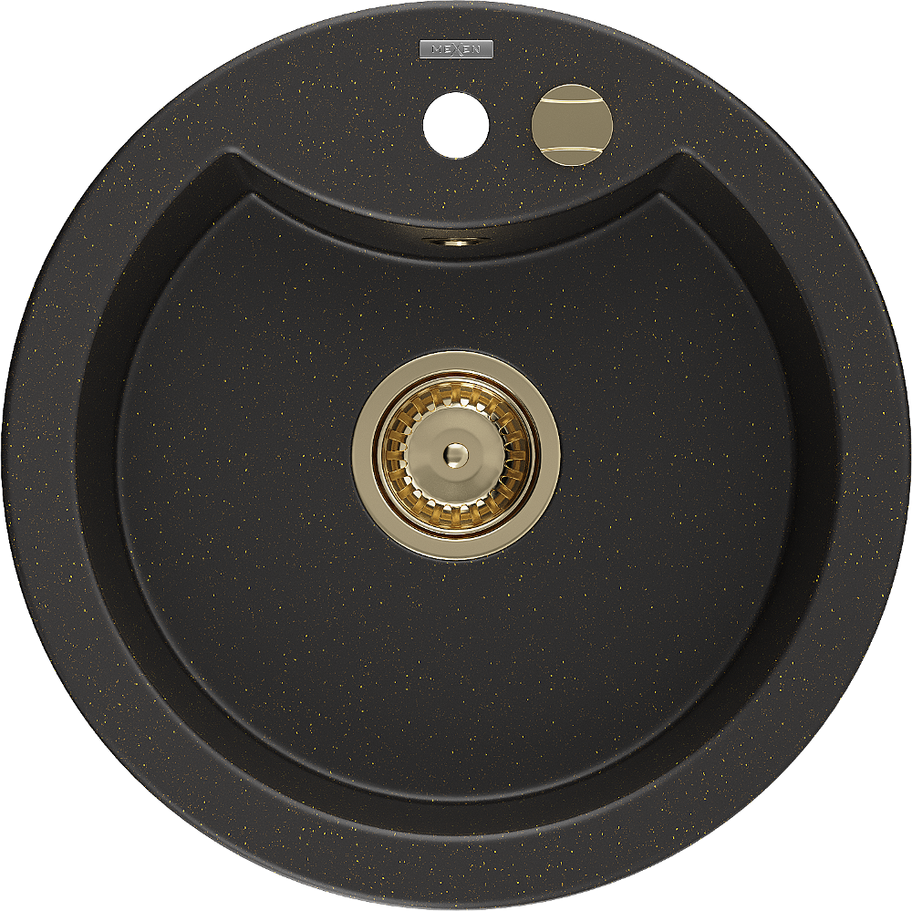 Mexen Diego zlewozmywak granitowy 1-komorowy 488 x 480 mm, czarny/złoty metalik, syfon złoty - 6512481000-75-G