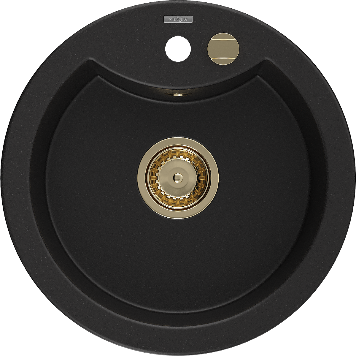 Mexen Diego zlewozmywak granitowy 1-komorowy 488 x 480 mm, czarny, syfon złoty - 6512481000-77-G