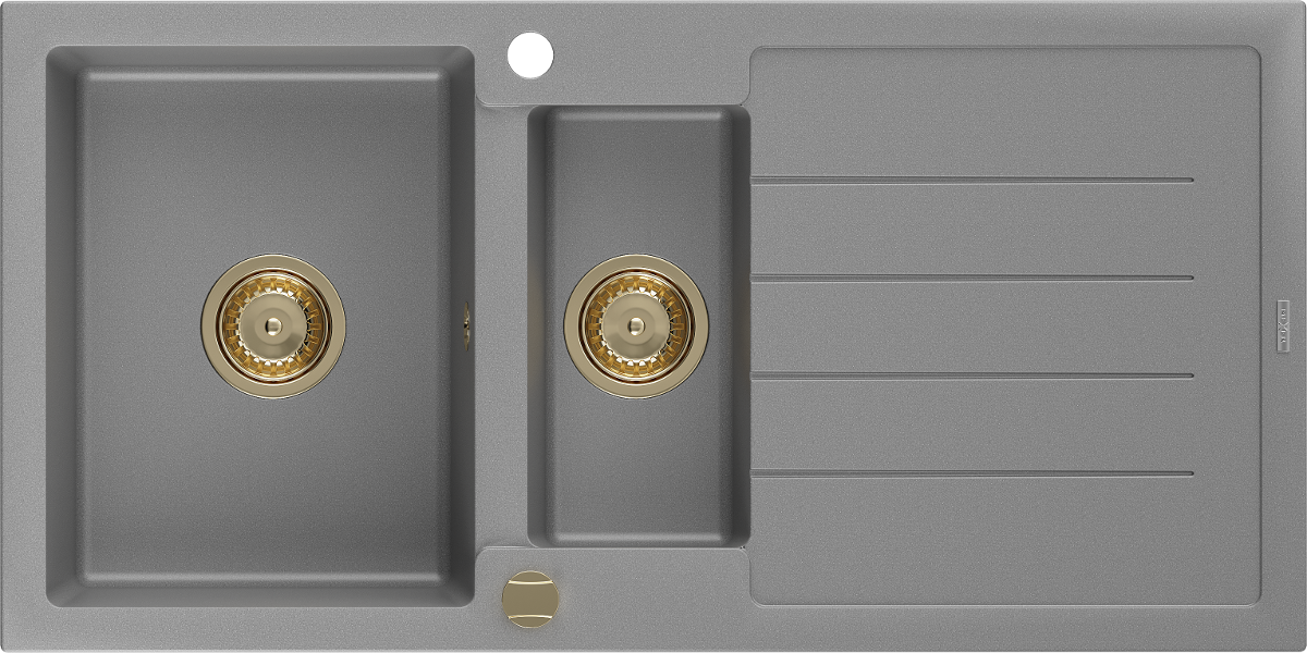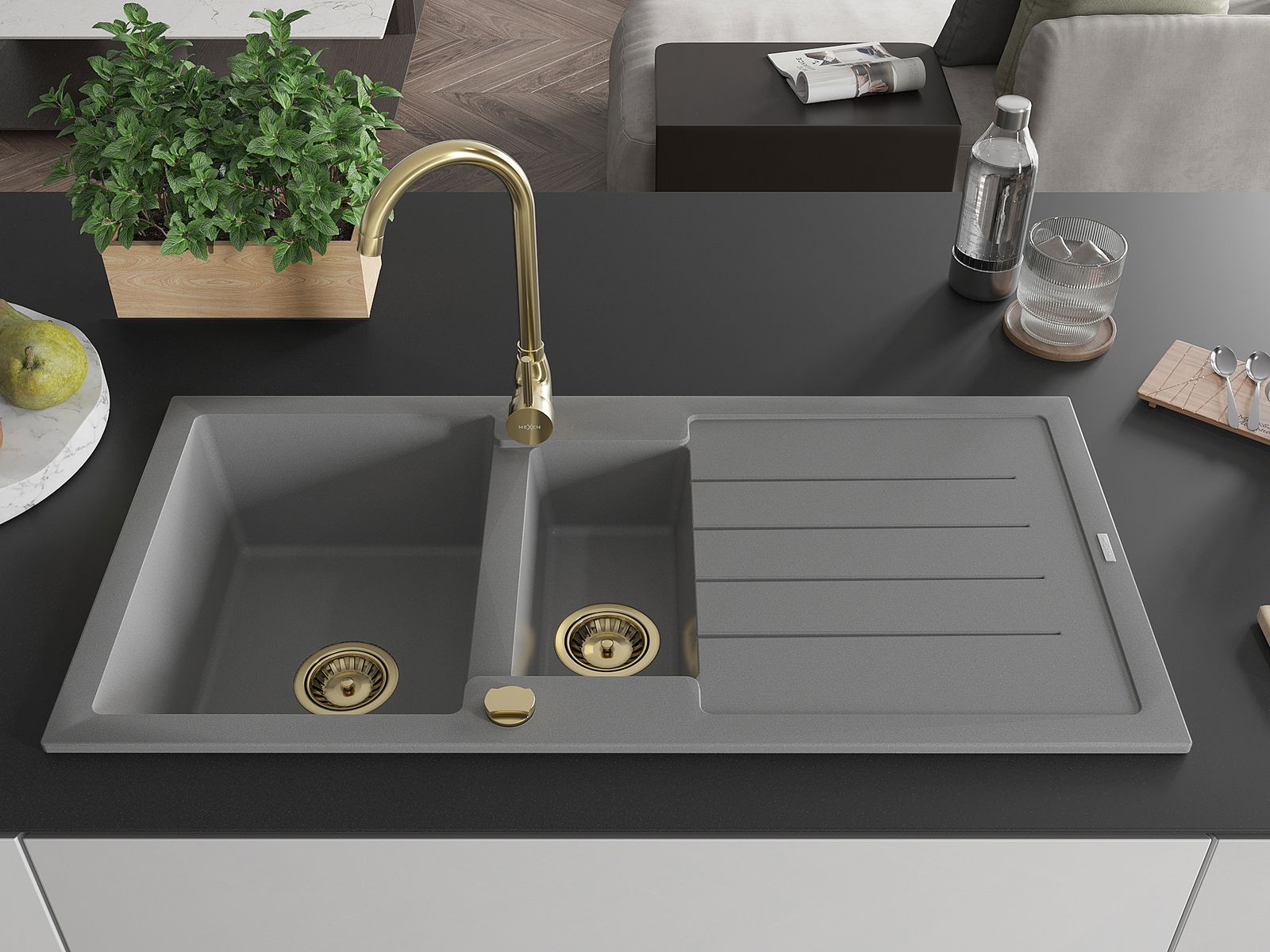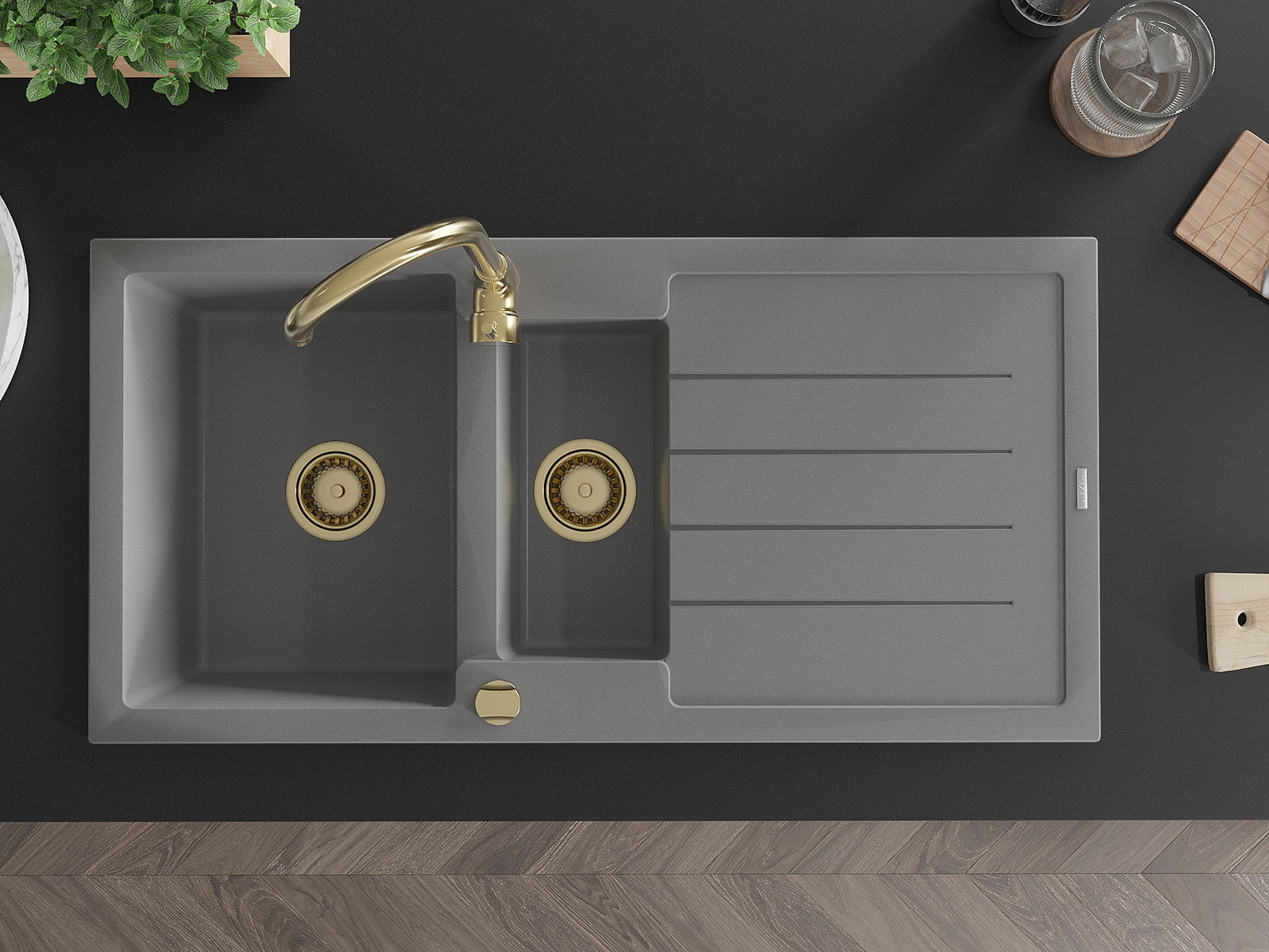 Mexen Andres zlewozmywak granitowy 1,5-komorowy z ociekaczem 1000 x 500 mm, szary, syfon złoty - 6515101510-71-G