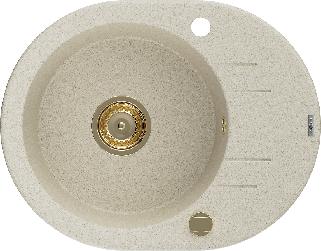 Mexen Kevin zlewozmywak granitowy 1-komorowy z ociekaczem 586 x 458 mm, beżowy, syfon złoty - 6517581005-69-G