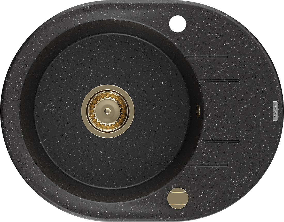Mexen Kevin zlewozmywak granitowy 1-komorowy z ociekaczem 586 x 458 mm, czarny/srebrny metalik, syfon złoty - 6517581005-73-G